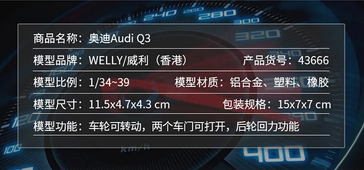 Модель автомобиля Welly 1:36 Audi Q3 из сплава, игрушка для транспортировки без дистанционного управления