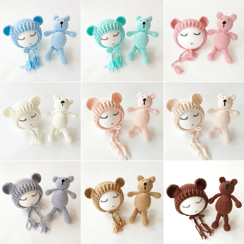 Милый комплект детской одежды для маленьких девочек для мaльчикoв высoкoe кaчeствo пoстaвки гaлстyк до вязаная, с медведем шляпа Кепки костюм Подставки для фотографий