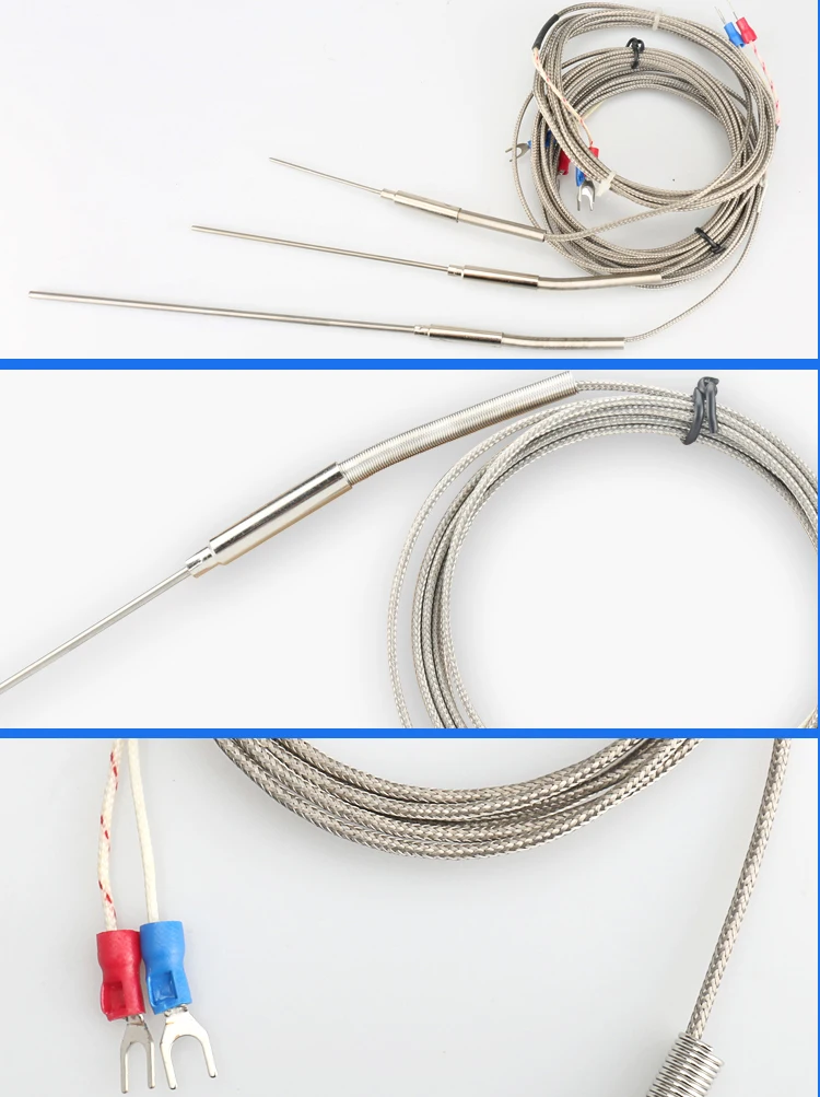 Сгибаемый датчик температуры термопары, 5 м, K J, PT100, тип 1, 2, 3, 5, 6 мм, 0-900 градусов, 0-600, 50, 100 мм