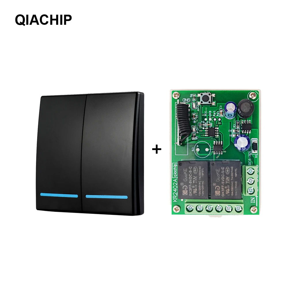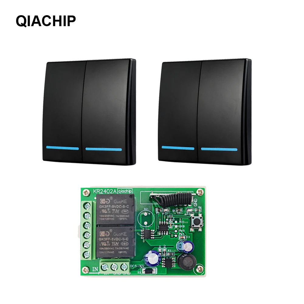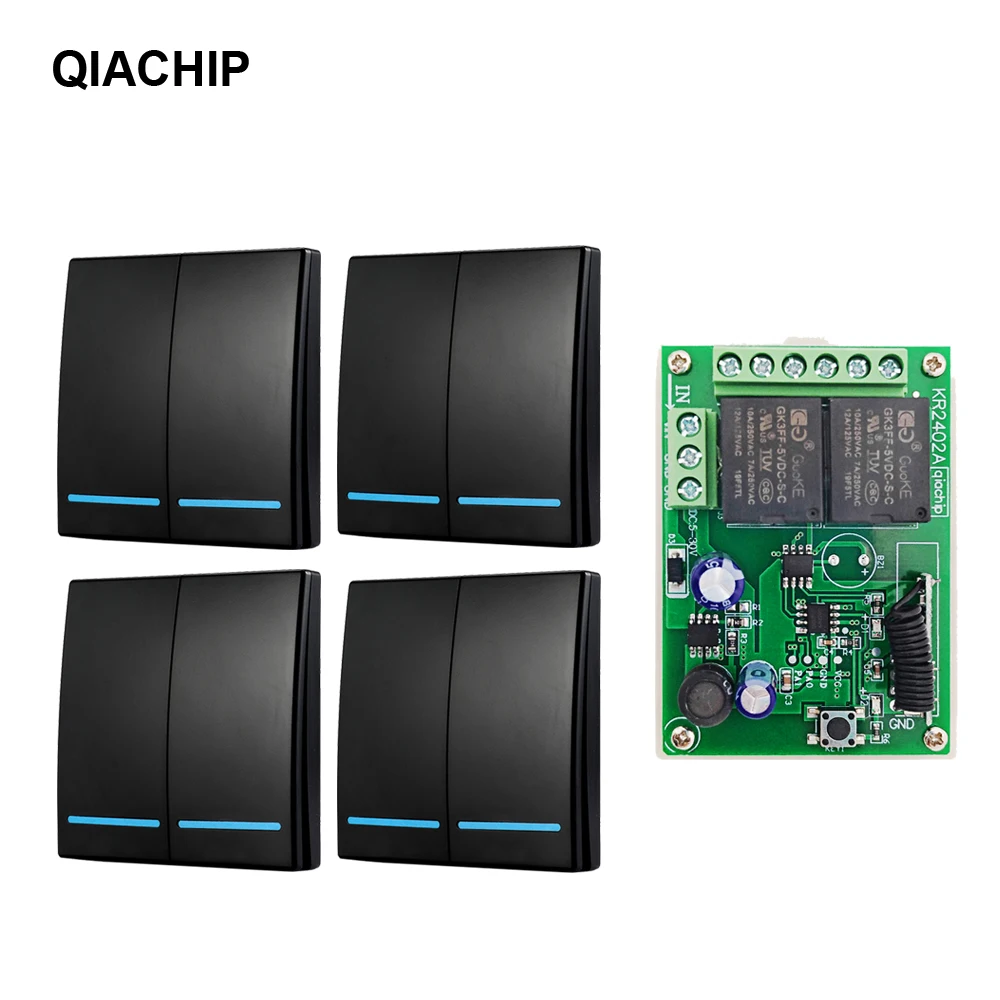 Пульт дистанционного управления QIACHIP, 433 МГц, 5 в пост. Тока, 12 В, 24 В, приемник 86, настенная панель, 2 кнопки, DIY, лампа для спальни, беспроводной умный светильник