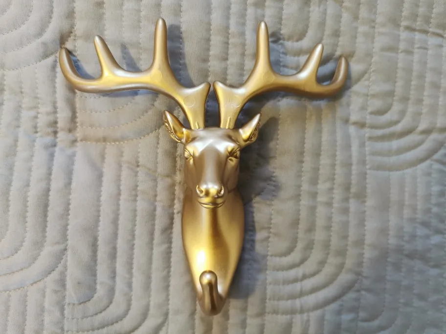 лось классный, как на фото, большой и тяжёлый, с креплением рога есть сложности, я посадила на жидкие гвозди