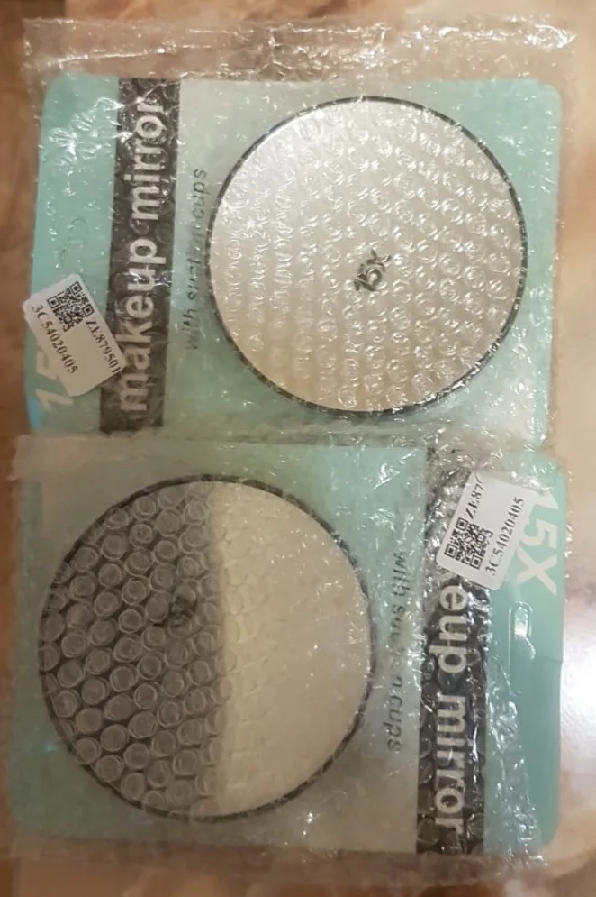 вполне сносное увеличительное зеркало из пластика с напылением. есть конечно искажение, но что можно ожидать от пластика. при такой кратности увеличения конечно фокусируемая площадь небольшая, чисто "прыщик рассмотреть", не для макияжа. на фото для сравнения древнее металлическое зеркало от микроскопа с такой же кратностью. за эти деньги качество нормальное. есть присоски, чтобы прилепить ,например, к обычному зеркалу. всем довольна. продавцу спасибо