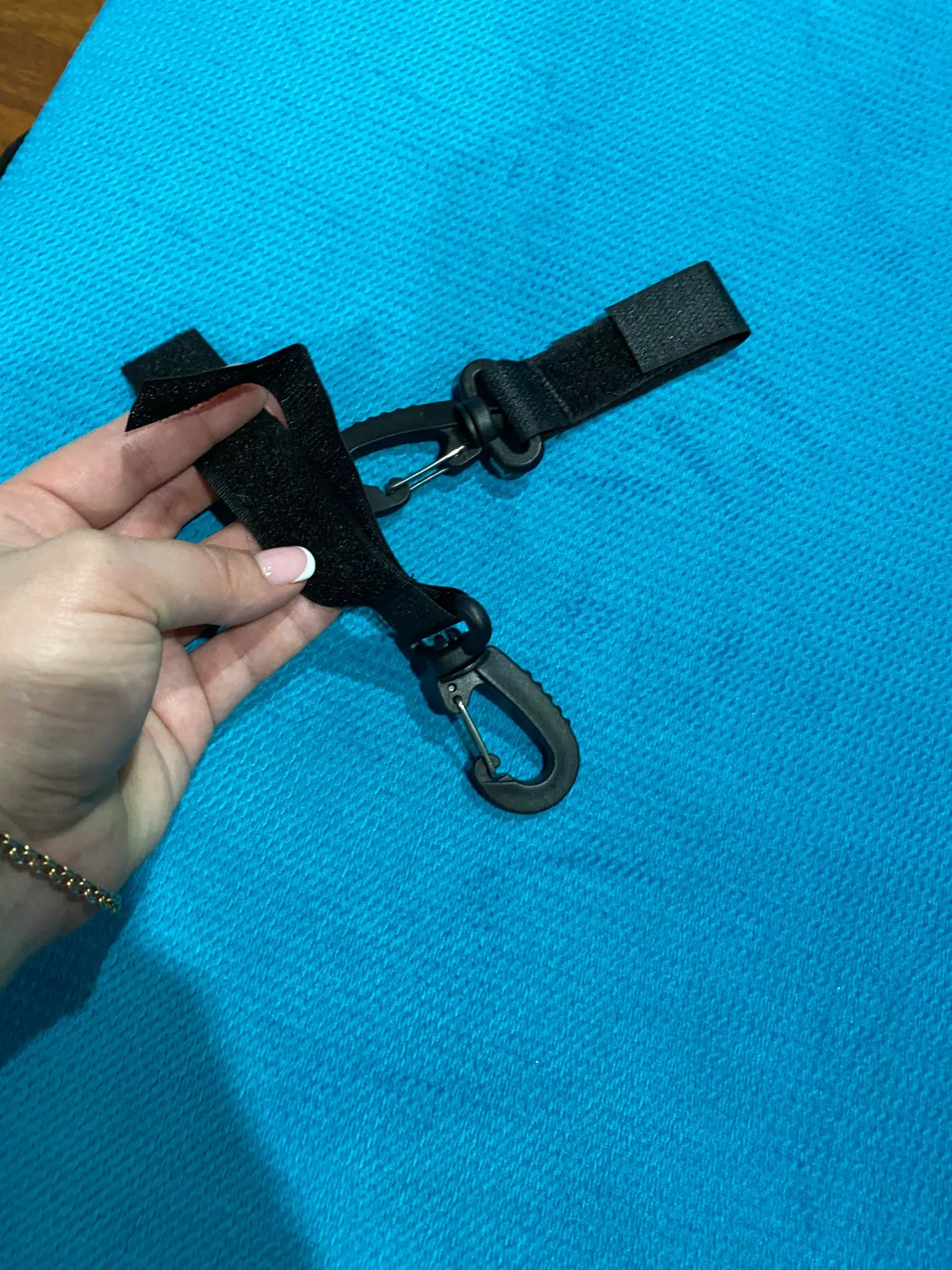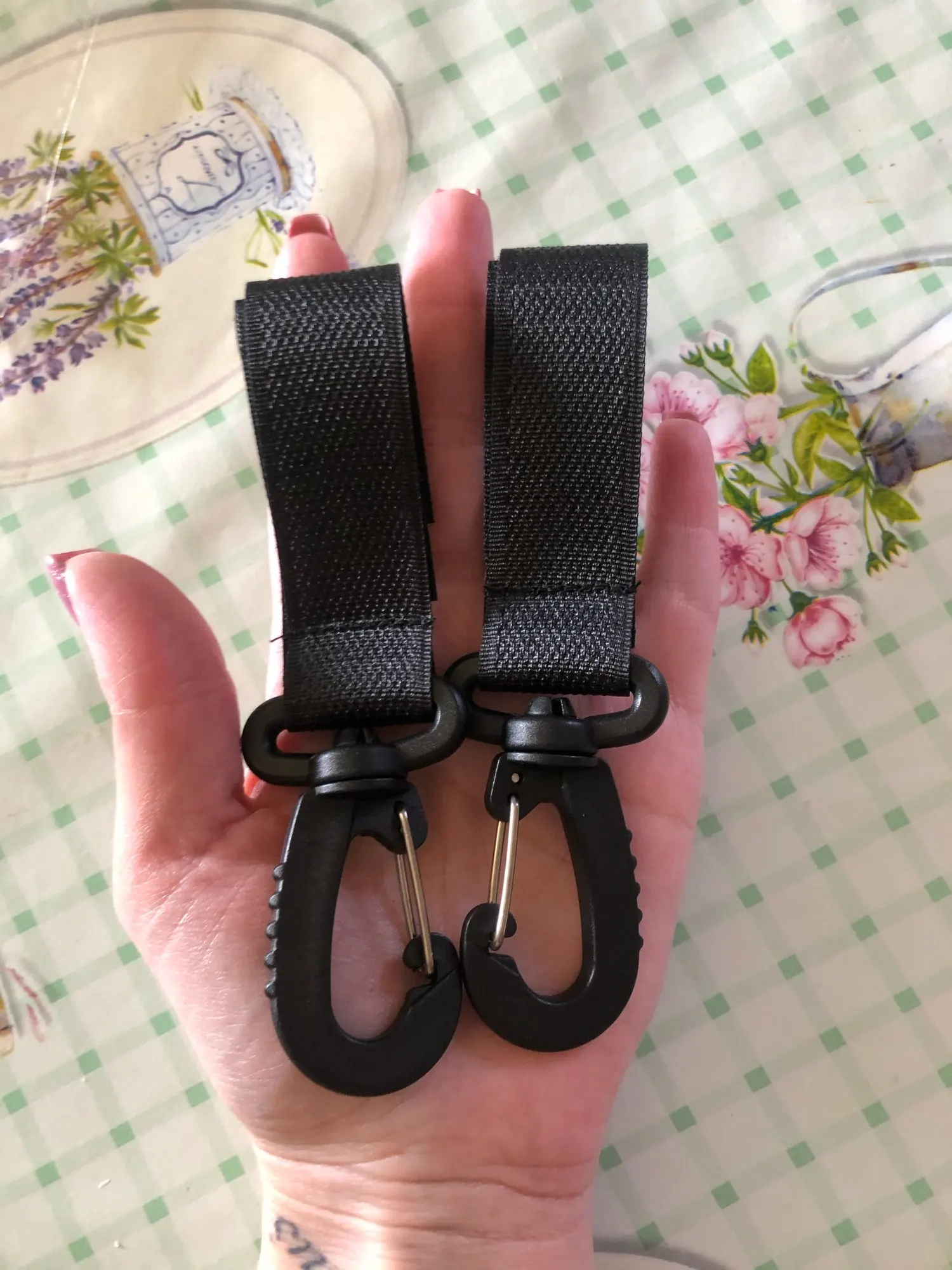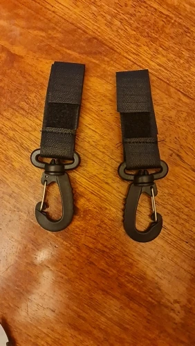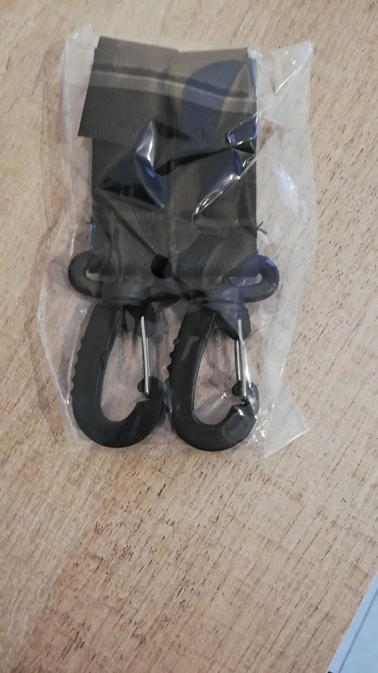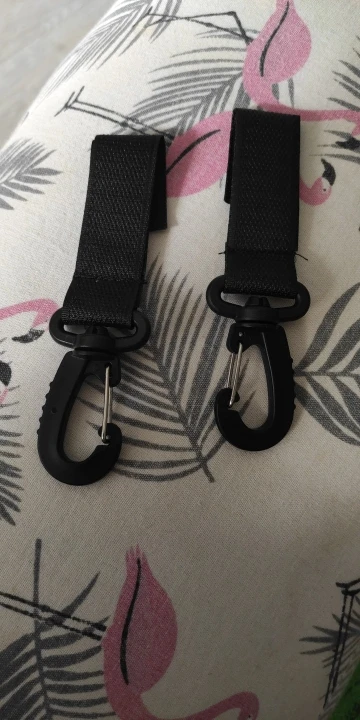 Неплохие карабинчики на липучках. Липучка крепкая. Правда пластмассовые, это немного настораживает. Не знаю насколько выдержат тяжёлое. Но сумку для коляски или рюкзак выдержать должны легко. Так что товар не плохой. Наверное, рекомендую)