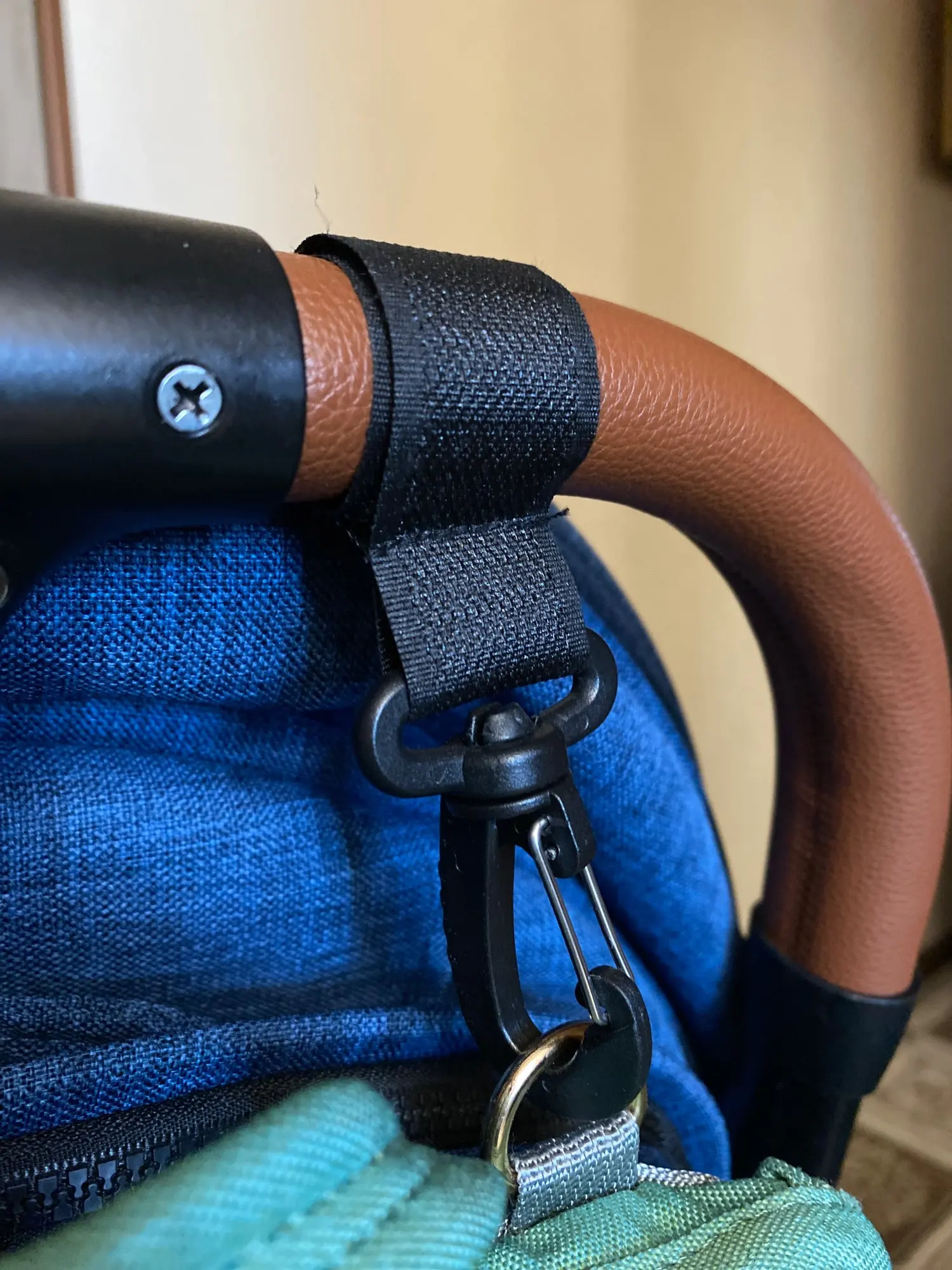 Обычные крючки на липучках, надеюсь будут держать сумку- рюкзак