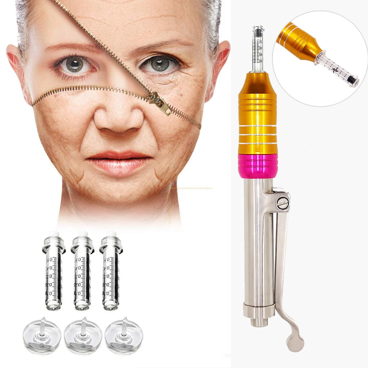 Пистолет для инъекций без иглы, гиалуроновая ручка, для кожи лица, против морщин, шприц для ампул, 0,3 мл, Филлер для губ с гиалуроновой кислотой