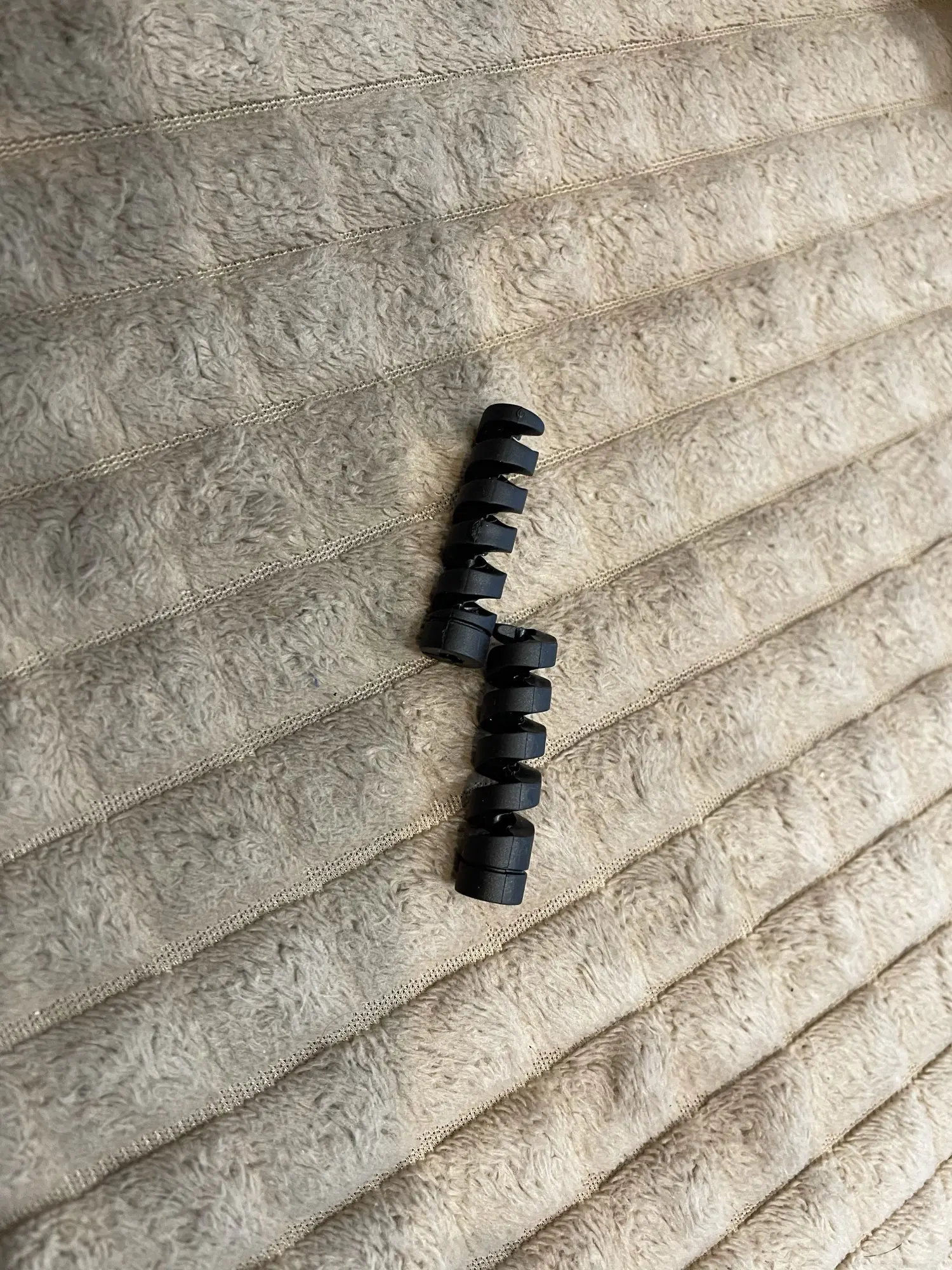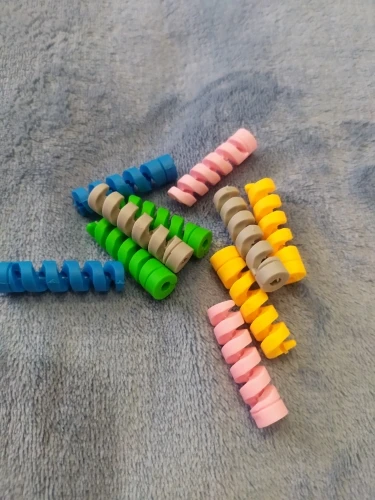 У меня есть кабели, которые поставляются с определённой техникой и подходят только для неё. Как правило они в резиновой или пластиковой оплётке, которая достаточно уязвима и со временем может трескаться. Так вот такие спиральки прежде всего надела на «старенькие» кабели, чтобы не пришлось искать им замену и прослужили дольше. Такое незатейливое приспособление в виде спиральки защитит изгибы кабеля в любом месте. Подходит для круглых и плоских шнуров. Понравилось, купила ещё. Спасибо.