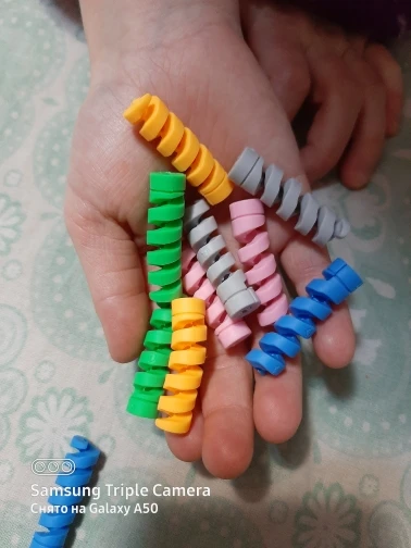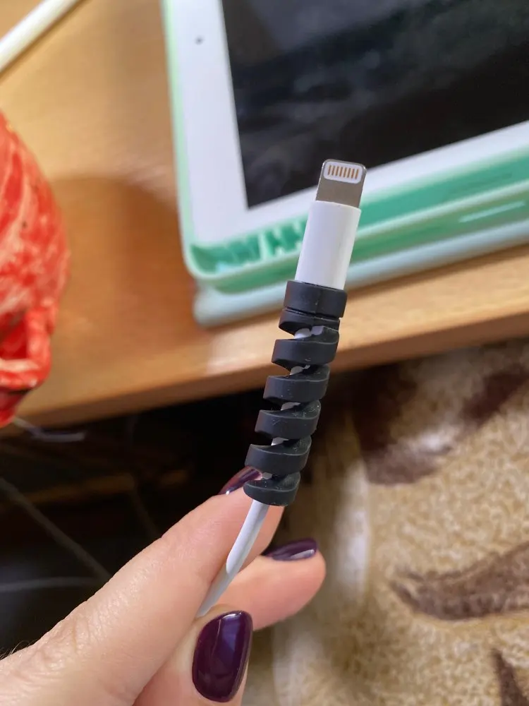 Отличная вещь! Покупаю уже второй раз и себе и на подарки друзьям, отличная защита кабеля, легко надеваются, я очень довольна! Многие спрашивают где взяла) Мне так надоело покупать новые зарядки для телефона, потому что ломаются в определенных местах. Эти штучки решают эту проблему. вещь полезная. Рекомендую к покупке.
