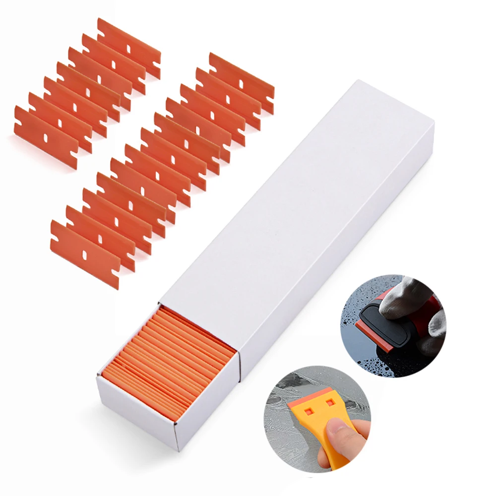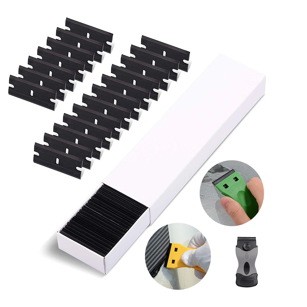 FOSHIO 100 шт. Пластиковые лезвия для бритвы с двойными краями для бритва для чистого бритья оконный скребок с оттенком из углеродного волокна виниловая пленка для автомобиля стикер для удаления