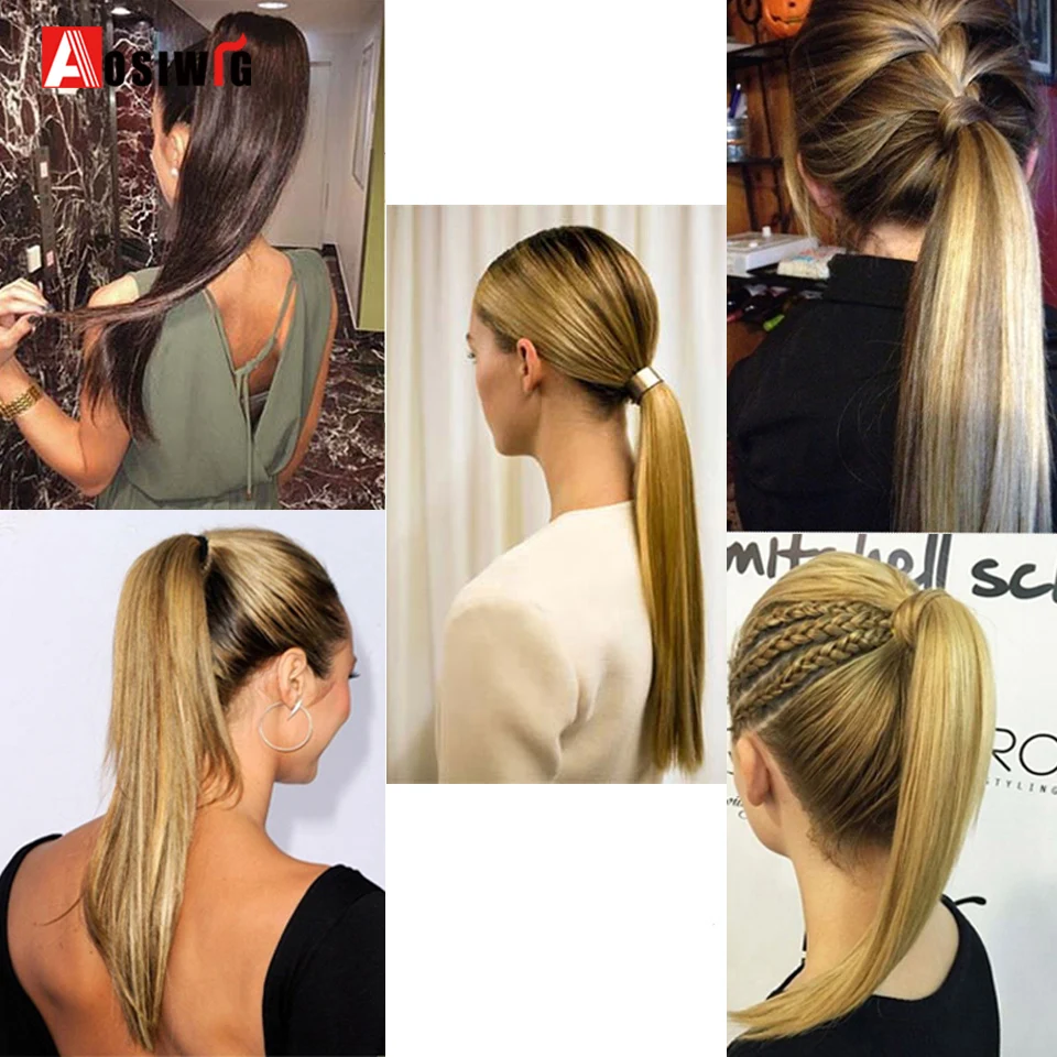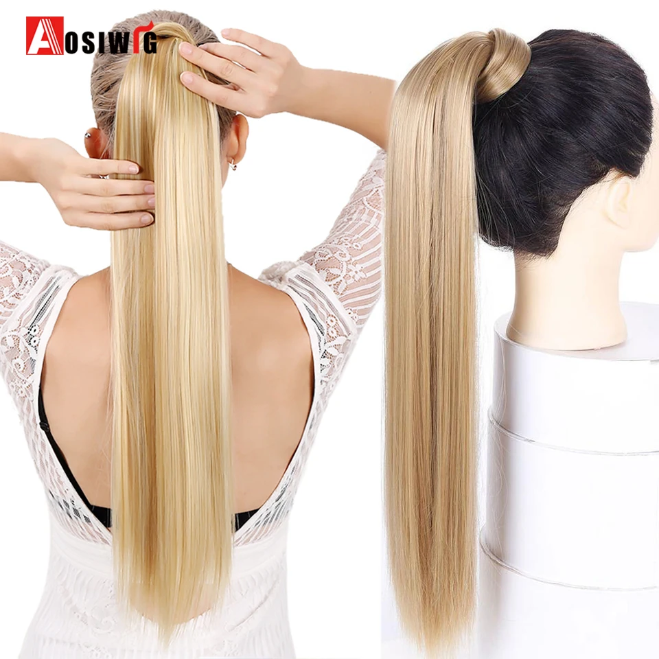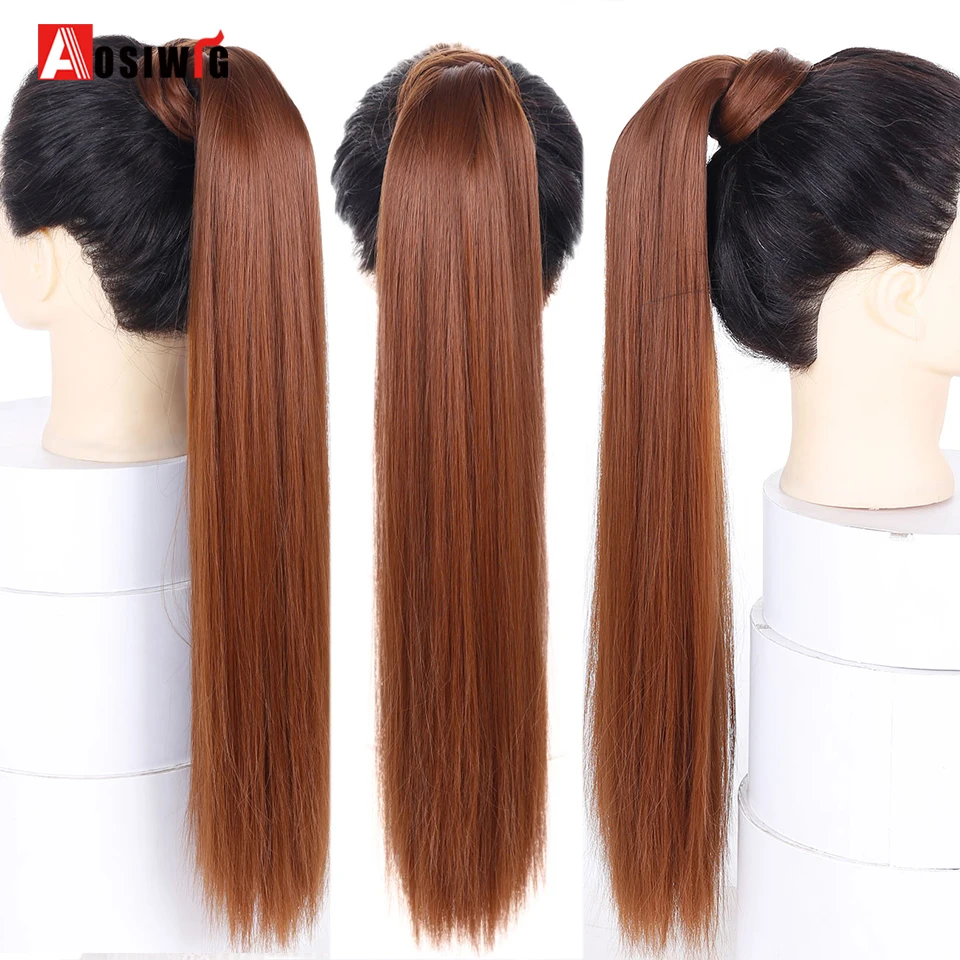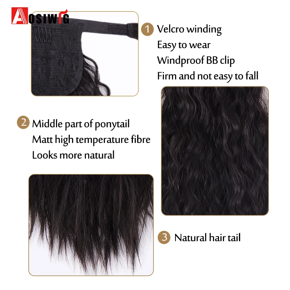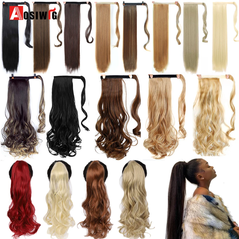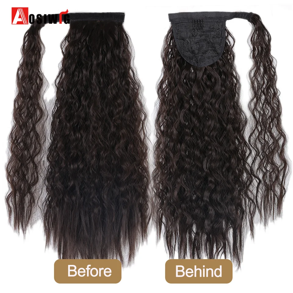 AOSIWIG синтетические натуральные длинные Курчавые Кудрявые конский хвост накладные волосы удлинение хвоста черные коричневые пушистые волосы для женщин