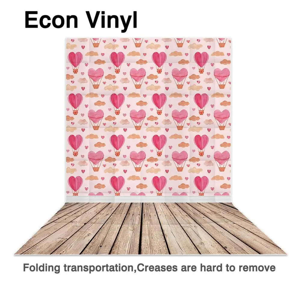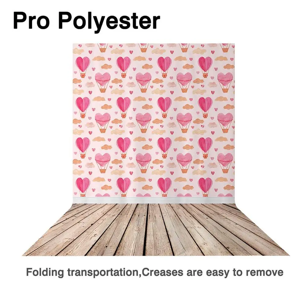 Фотофон Allenjoy, День Святого Валентина, сердце, любовь, розовый, воздушный шар, облака, фон с изображением деревянного пола, 14 февраля