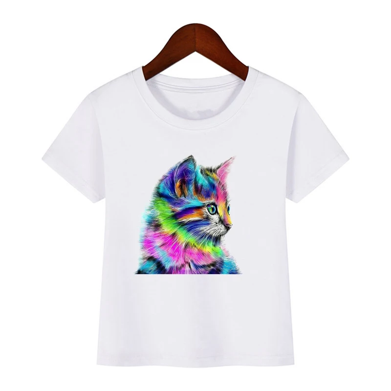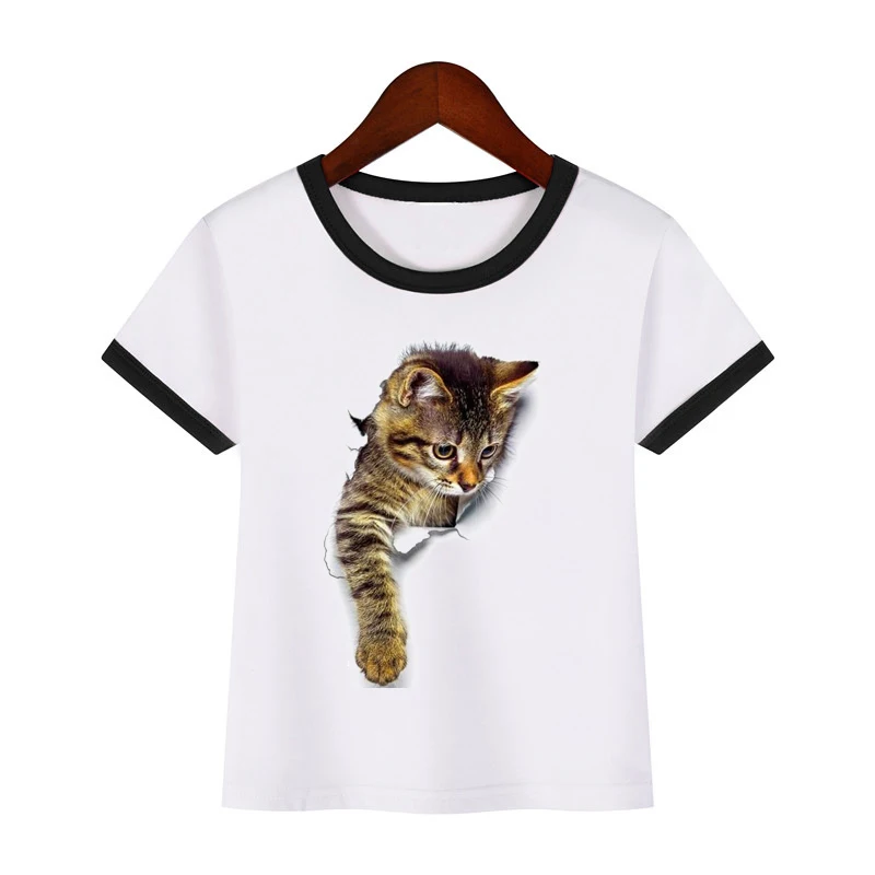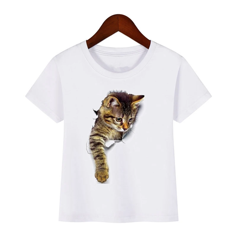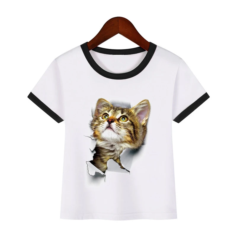 Детская забавная футболка с 3D-принтом кошки, Детская летняя одежда с короткими рукавами и милыми животными для мальчиков и девочек, футболки, 2019