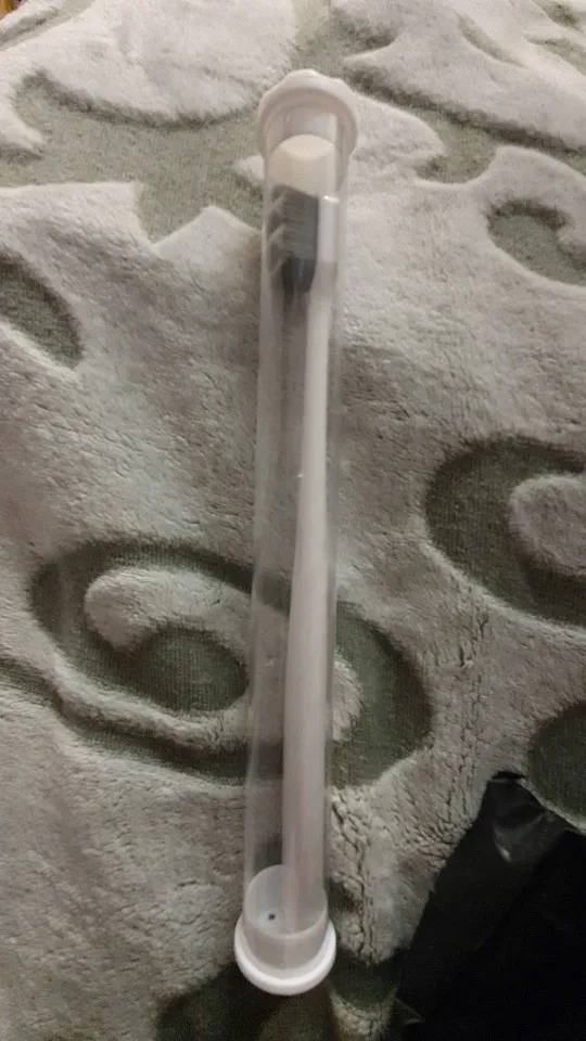 Моя самая долгожданная и неожиданно все-таки дошедшая посылка. Заказ был сделан в октябре, а пришёл в десятых числах января, когда уже закончилась всякая защита. Продавец был на связи, просил подождать и не открывать спор. Когда вышли все сроки, предложил вернуть деньги на электронный кошелек. Пока в суете будней я откладывала сей процесс, щеточка чудесным образом доползла до меня. Все как на фото: белая, много-много щетинок, в футляре (удивляюсь, как он уцелел в простом пакете без пупырки). При чистке щетка кажется мягкой, но с задачей своей справляется и есть ощущение чистоты зубов.