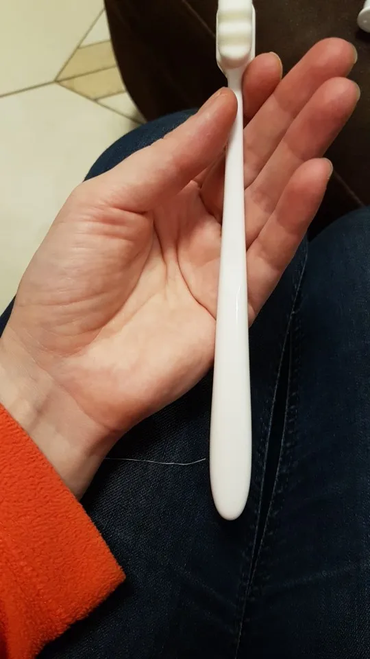 Доставка заняла 3 (Три!!!) месяца, так что если вам надо срочно почистить зубы, то этот вариант не для вас ))) А так норм, очень мягкая щетина, не ожидал. Волоски торчат, но их не проблема образать. Щётка, кстати, не маленькая, как я думал при заказе, - на фото она рядом с паспортом: можно оценить размер. Как дорожная, в общем, не прокатит, хотя и с футляром, и даже в футляр встроено закрывающееся колечко, чтобы вешать на гвоздик! В целом, я доволен.