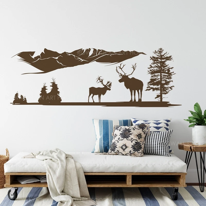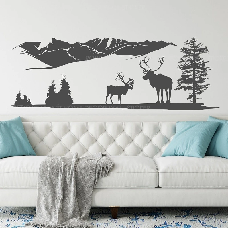 Deers Mountain Настенная Наклейка-натуральная Наклейка на стену, наклейка на стену с сосновой деревом, Виниловая наклейка большого размера 3903