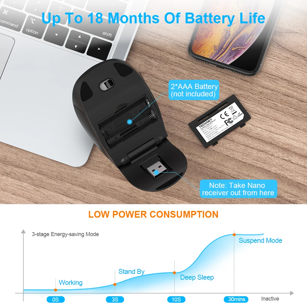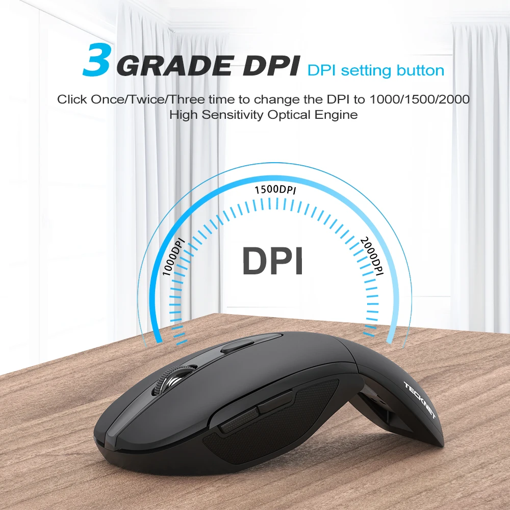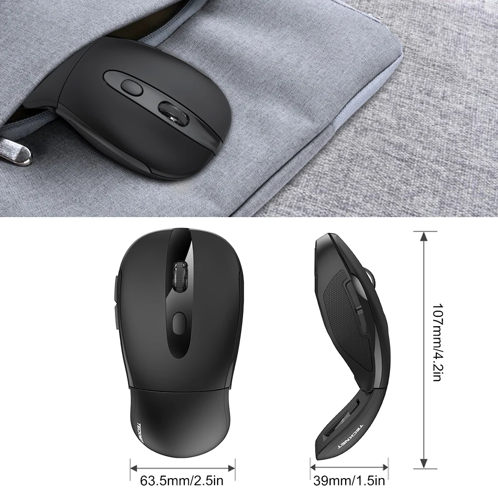 TeckNet складная беспроводная компьютерная мышь 2000DPI регулируемая складная мышь с 2,4G беспроводным приемником для ноутбука Microsoft PC