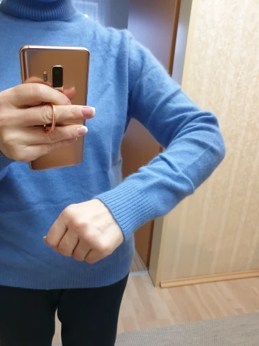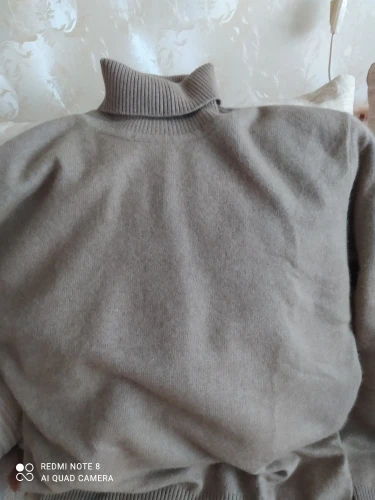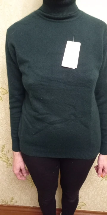 Очень теплая водолазка. Похоже, что натуральная ткань, т.к после стирки воняла овчиной, но после высыхания запах ушел. Очень приятная к телу, но маломерка. На свой 46 купила 48 и он оказался мал мне. Очень большой минус - когда сверху одеваю пальто водолазка линяет и как-будто на пальто лежал кот, смотрится ужасно.