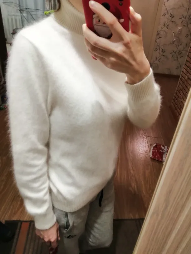 на мой xs - m немного коротковато, рукава по длине также как на фото немного короткие. не критично, но нужно учесть при выборе размера. материал и цвет отличные, как на фото. на бирке - писец, на пакете - норка, на ощупь - ангорка