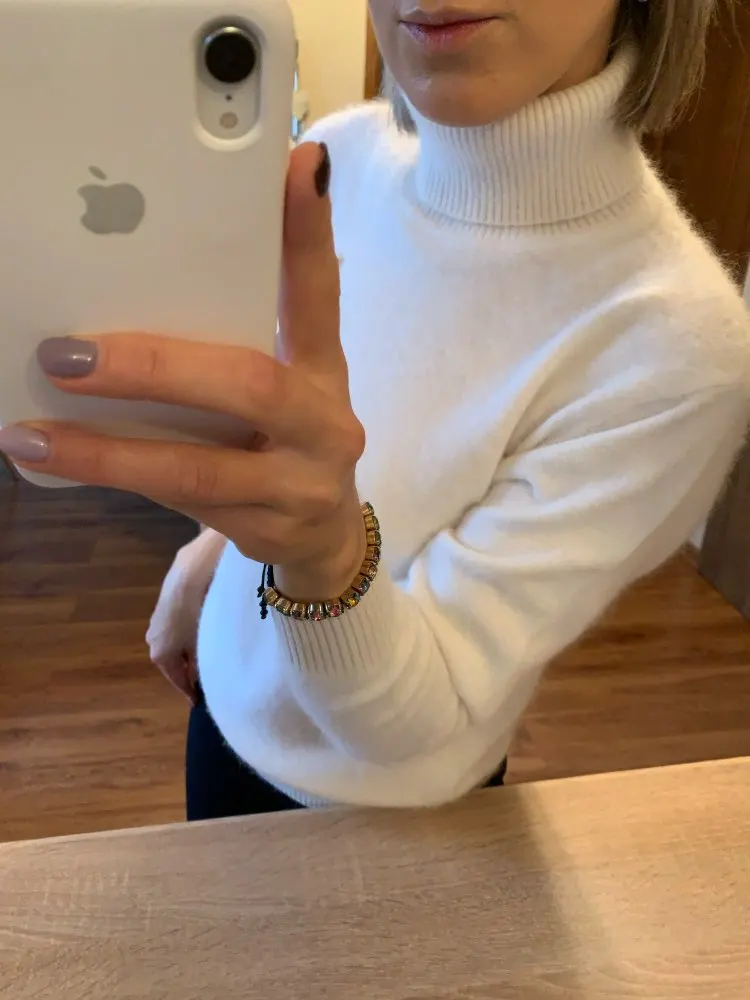 Мне прислали брак, весь свитер в темных нитках и пятнах машинного масла, цвет не белый, а грязно- беж, деньги вернули, но очень хотела свитер как на картинке, поэтому разочарована