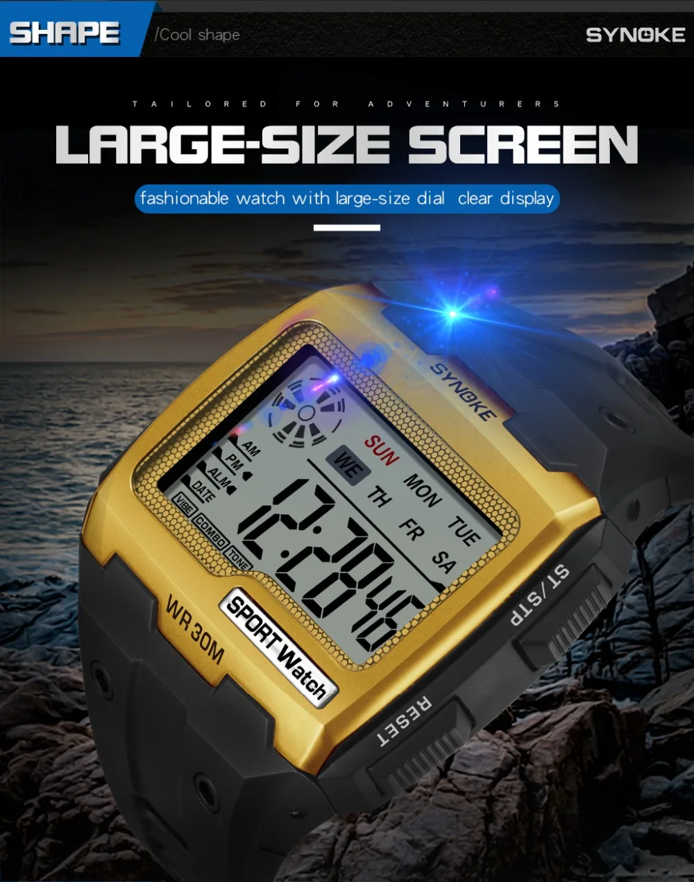 Часы наручные SYNOKE мужские спортивные, брендовые Роскошные светодиодсветодиодный цифровые, с большим циферблатом