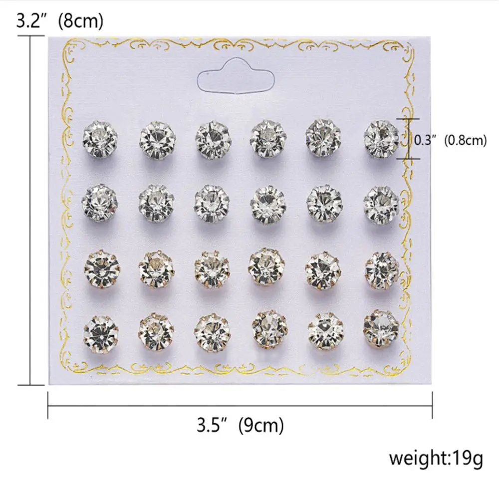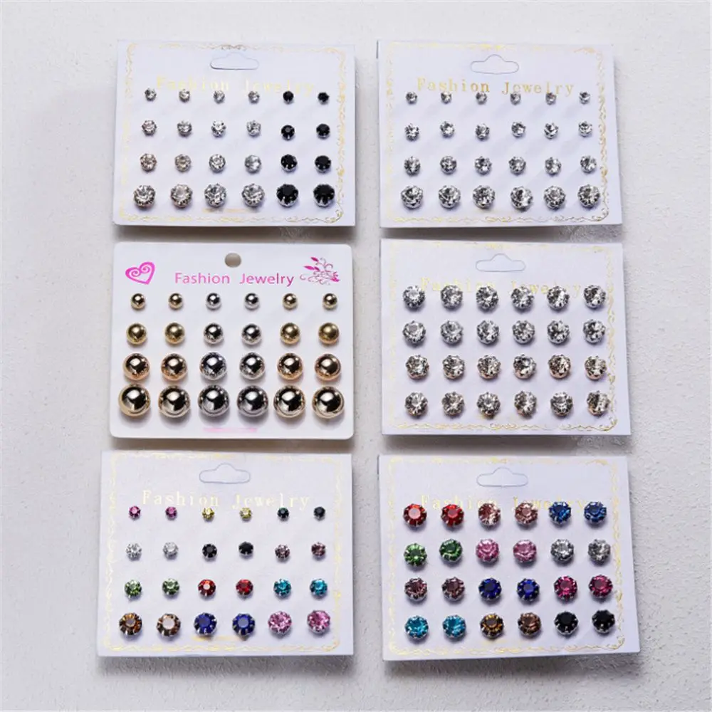 12 паркомпл. Кристальные серьги гвоздики с камнем Красочные Модные серьги для женщин ювелирные изделия серебро Цвет Пирсинг 2,5345