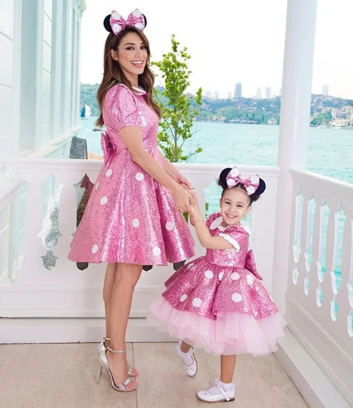 Розовые платья с короткими рукавами и блестками для мамы и дочки, Платья До Колена для дня рождения для девочек, праздничная одежда, розовые платья для выпускного вечера