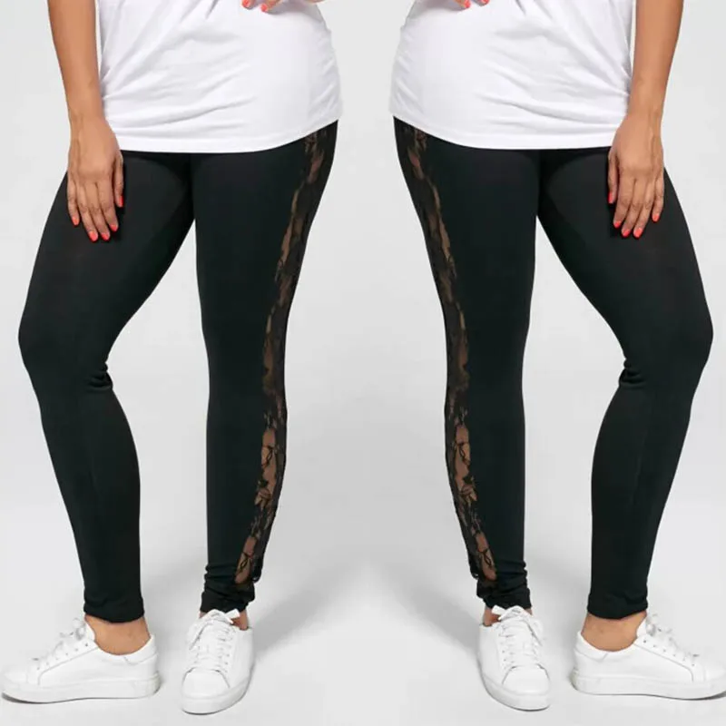 Женские леггинсы с цветочным кружевом, черные леггинсы с вырезами по бокам, облегающие Стрейчевые брюки размера плюс, UK10-18
