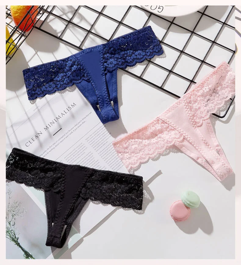 Женские сексуальные стринги с кружевом хлопковые трусы Трусы-стринги для девочек; Новинка Мягкая стринги бесшовное, прозрачное трусики нижнее бельё для девочек 3 шт.компл. дропшиппинг