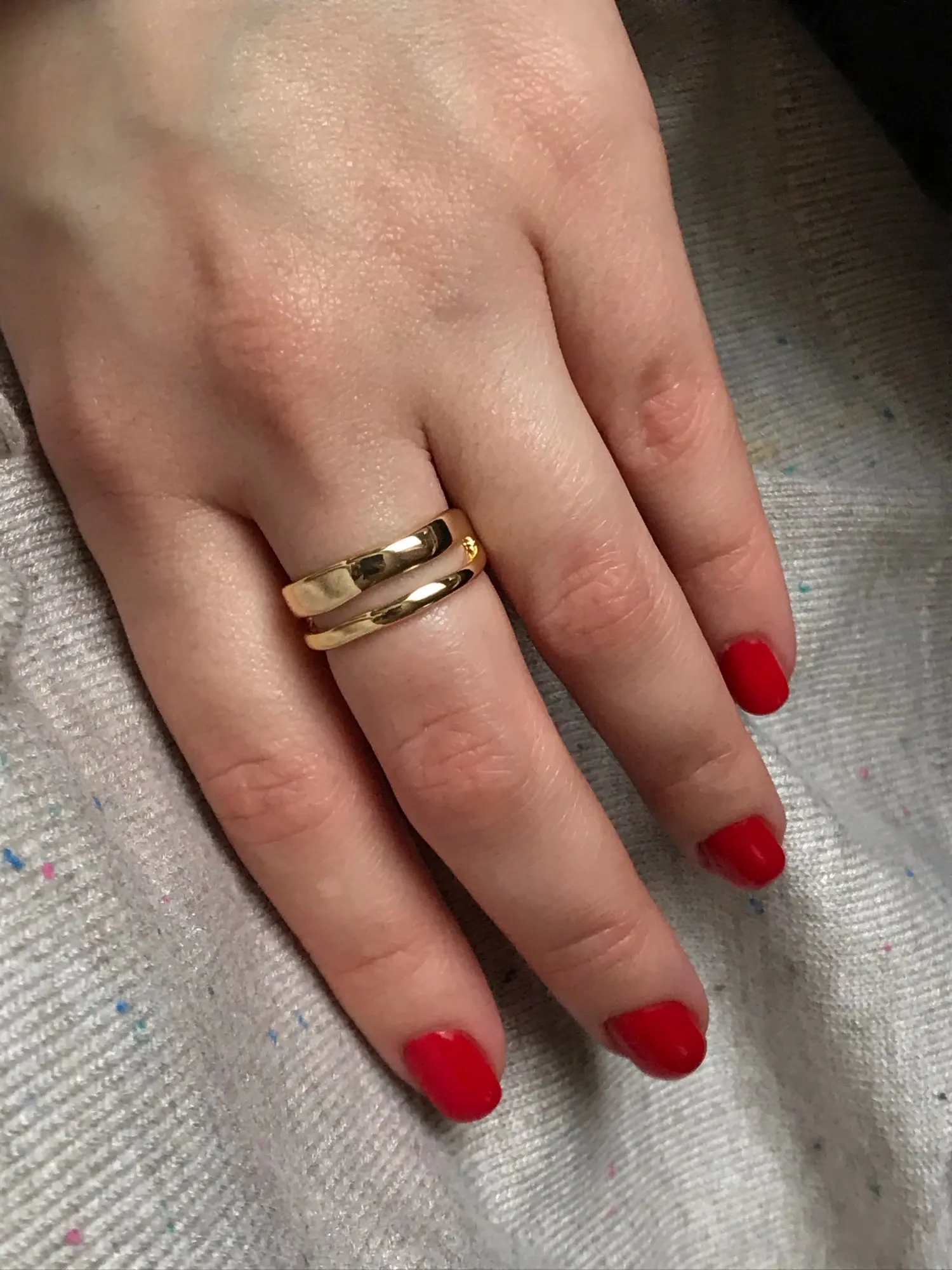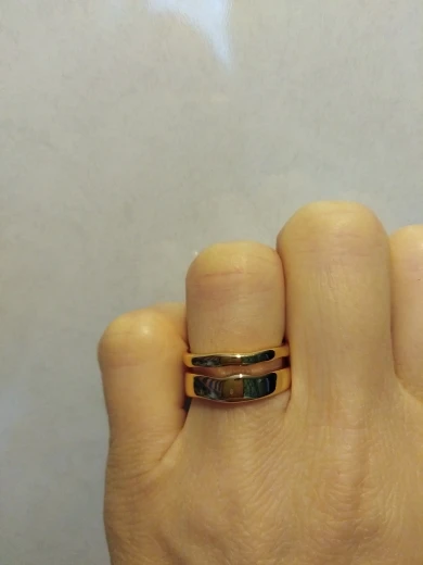 Чудесное кольцо, единственное, не получается его увеличить. Боюсь сломать. А так просто нет слов, как хорошо смотрится. На фото кольцо из лимонного золота, смотрятся хорошо, даже не заметно, что это бижутерия за 100₽. Цвет кольца скорее похож на желтое золото, 750 пробы