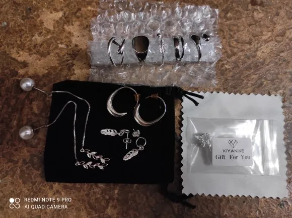 Кольца шли больше месяца. Все в хорошем состоянии, кроме одного, оно выглядит как будто его уже носили, открою на него спор.. остальные красивые. Серьги в подарок положили и мешочек с салфеткой.