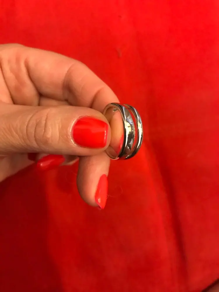 Идеальное кольцо, обещает быть серебряным, поставляется с печатью 925 пробы. Выглядит как серебристый. Он говорит, что Он адаптирован, но слишком жесткий и трудно адаптироваться, к сожалению, он идеально соответствует моему размеру, я использую 6. Он был задержан только на 1 день с предполагаемой даты доставки. Очень хороший продавец, он добавил несколько маленьких сережек и пакет с серебряными чистыми салфетками в упаковке.