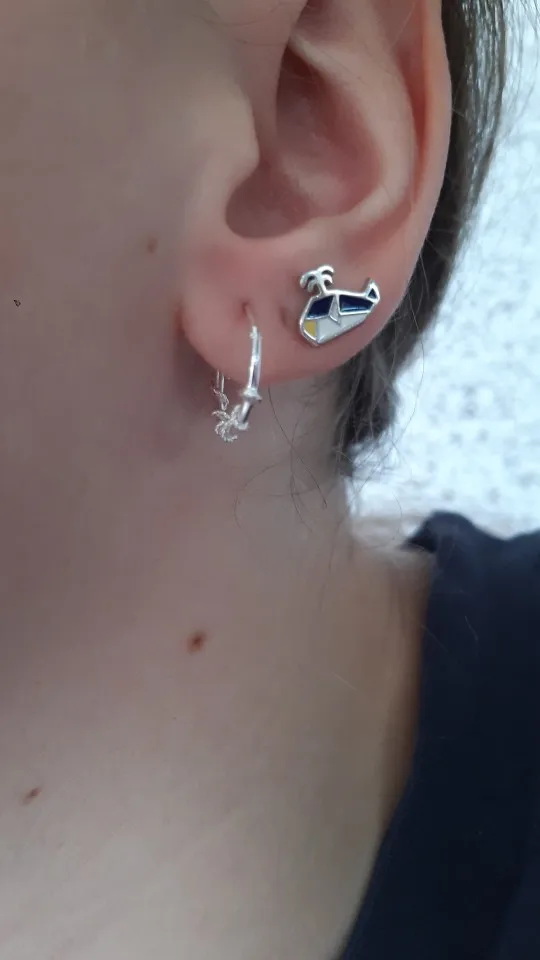 ну сережки не о чем. я все серьги заказываю на алике и за такую цену можно получше найти, но эти, прям реально ужасные, растегнуть растегнула, но застегнуть на ухе надо постараться. сама эта штучка которую в ухо вставлять тоненькая, в любую секунду может поломаться, на честном слове держаться