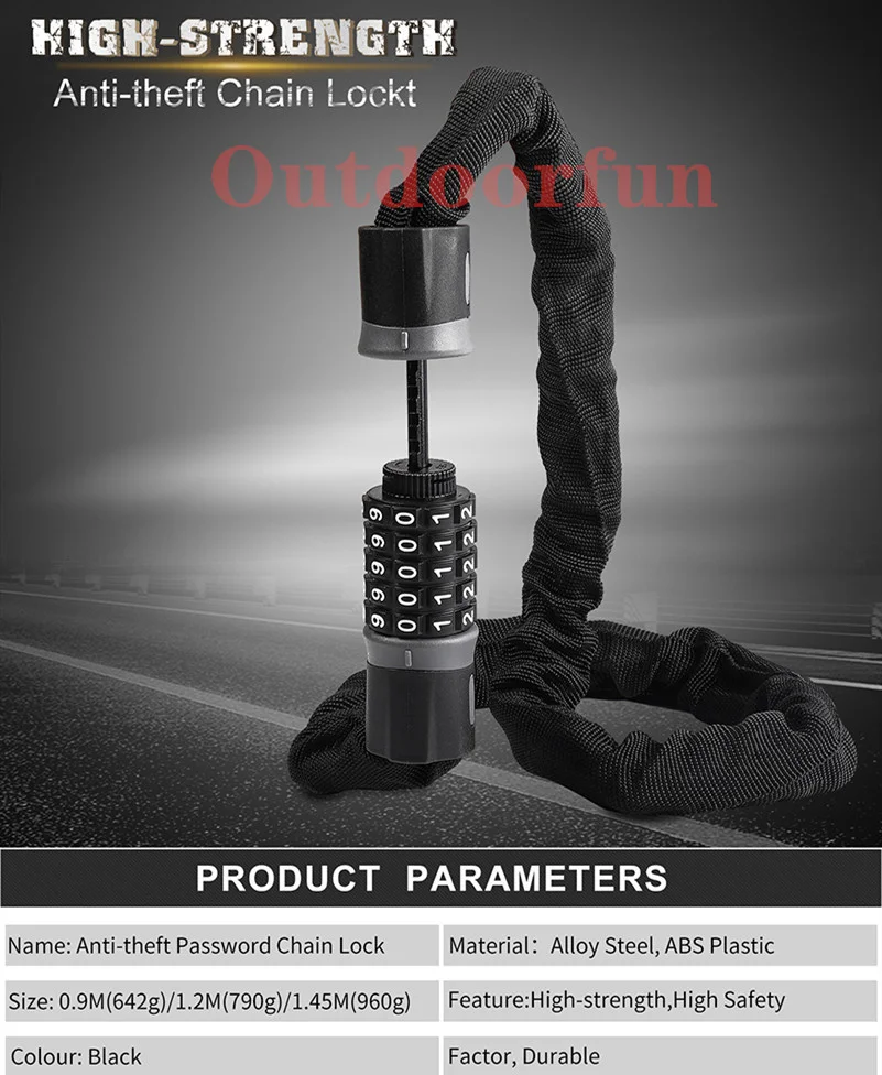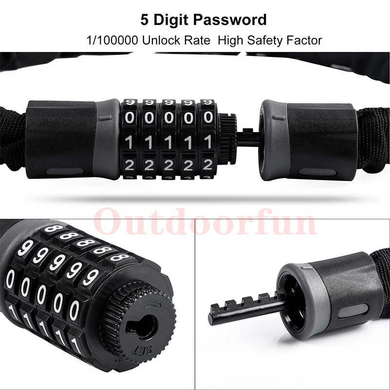 Замок на цепь для велосипеда, 4 5 значных кодов, защита от кражи и резки, Мягкий складной замок для защиты мотоцикла и велосипеда