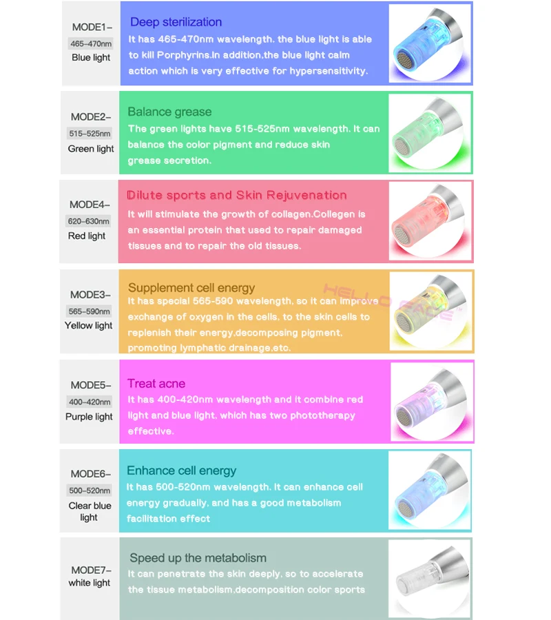 7 цветов светодиодный фотон Электрический Дерма ручка