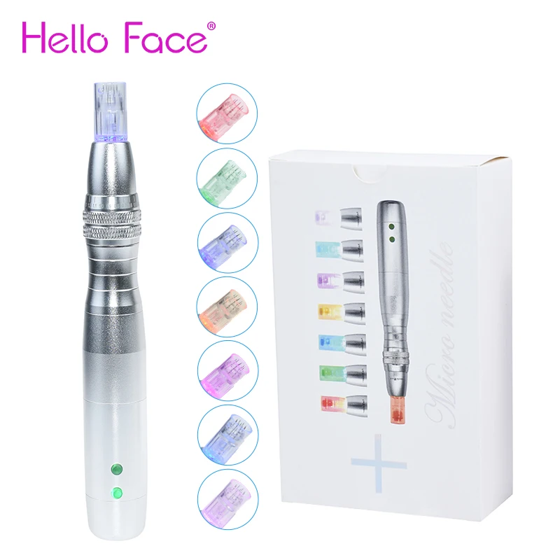 Ручка Derma является автоматической и перезаряжаемой, она проста в использовании, вам не нужно покупать новую, просто замените иглу. Игла регулируется по разному размеру в зависимости от областей и целей лечения. Более удобно обрабатывать узкие области, такие как нос, вокруг глаз или рот.