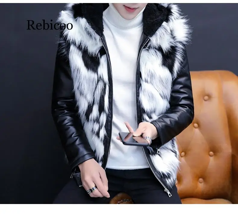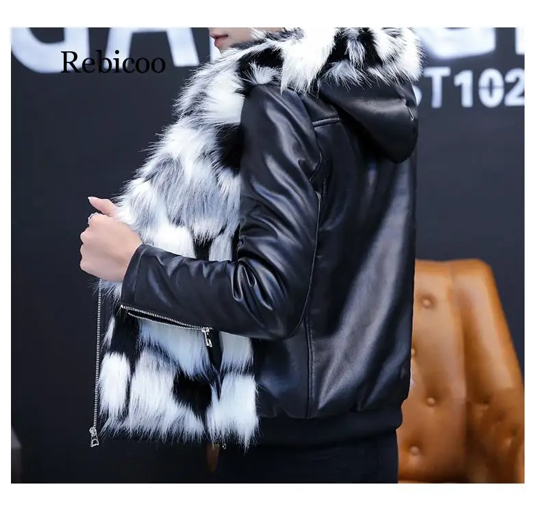 Мужская куртка из искусственного меха и один оригинальная красивая кожа с капюшоном Молодежные зимние утепленные брюки с ворсом для кожаная куртка