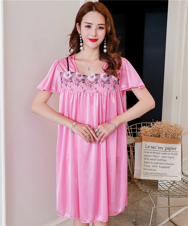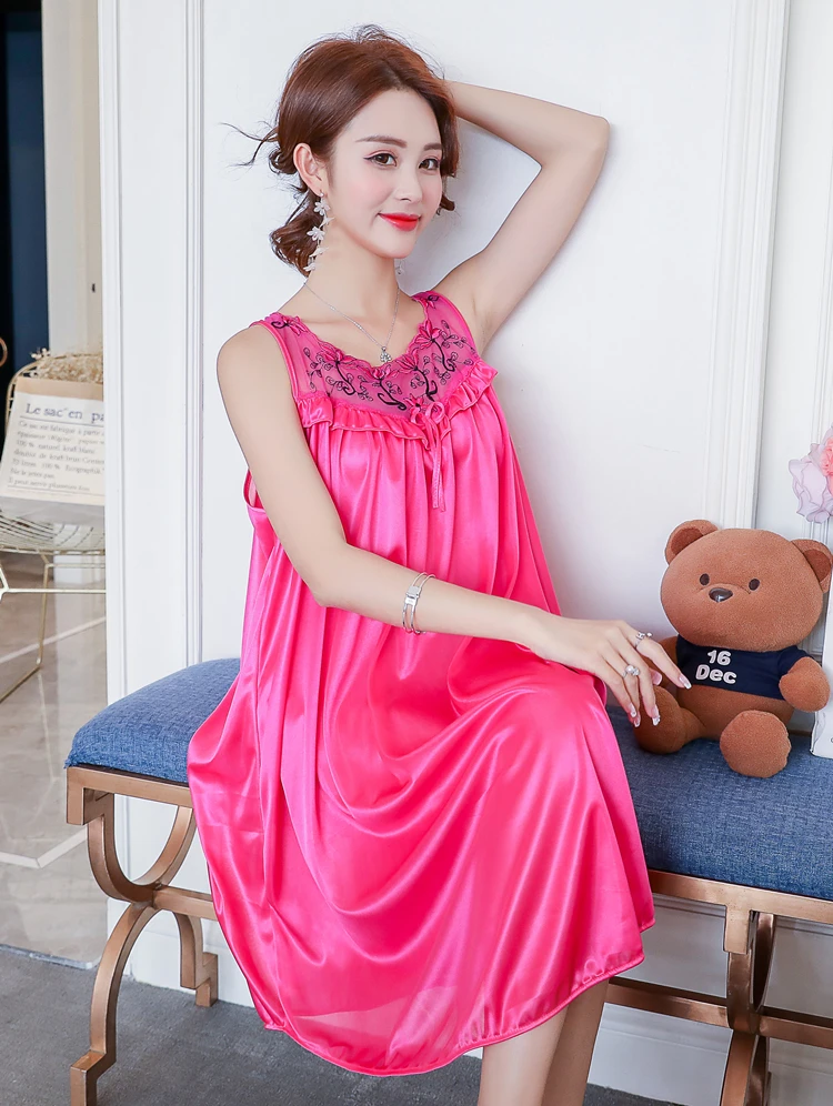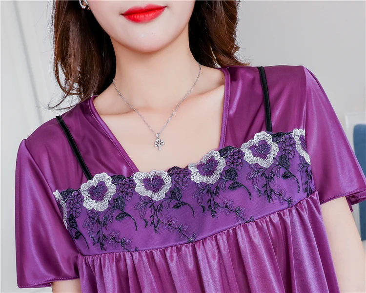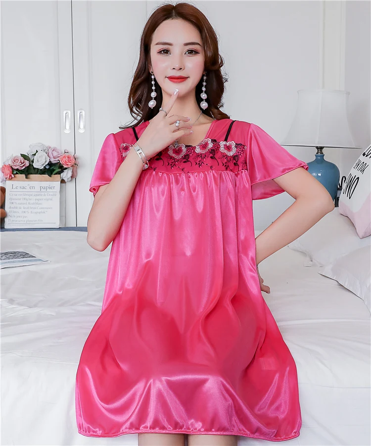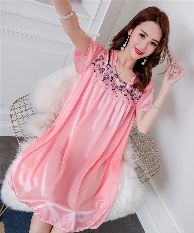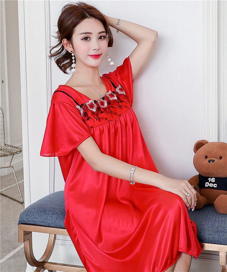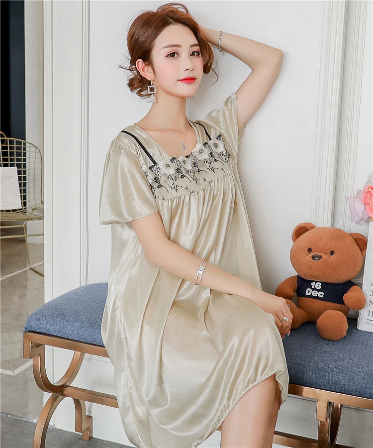 Ночная рубашка Женская атласная, домашняя Удобная Ночная сорочка из вискозы, длинная ночная рубашка, большие размеры 4XL