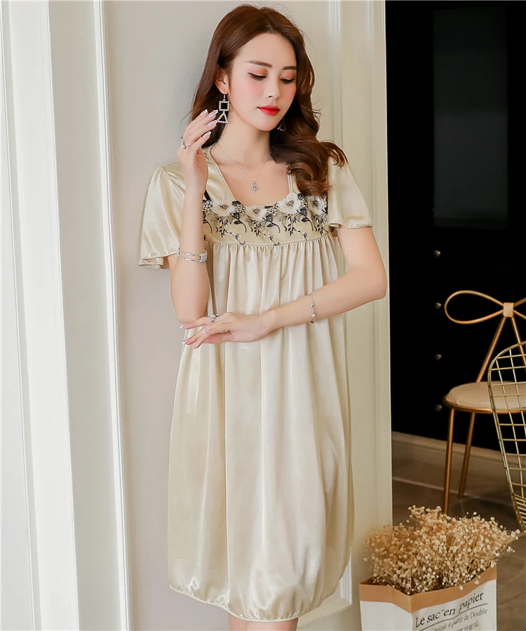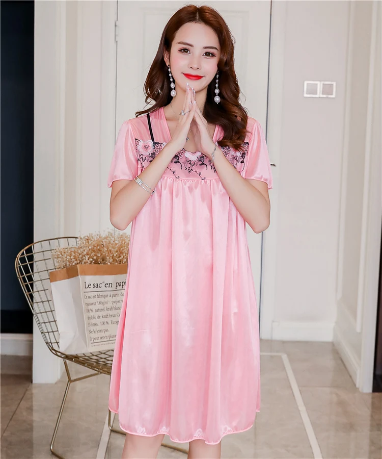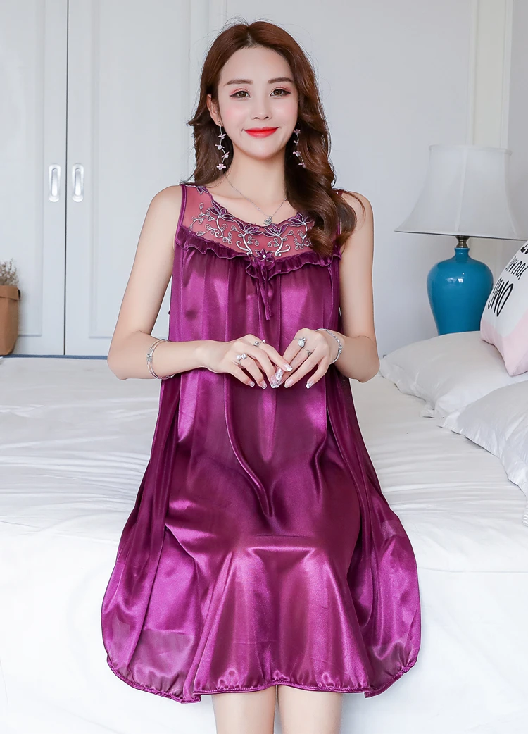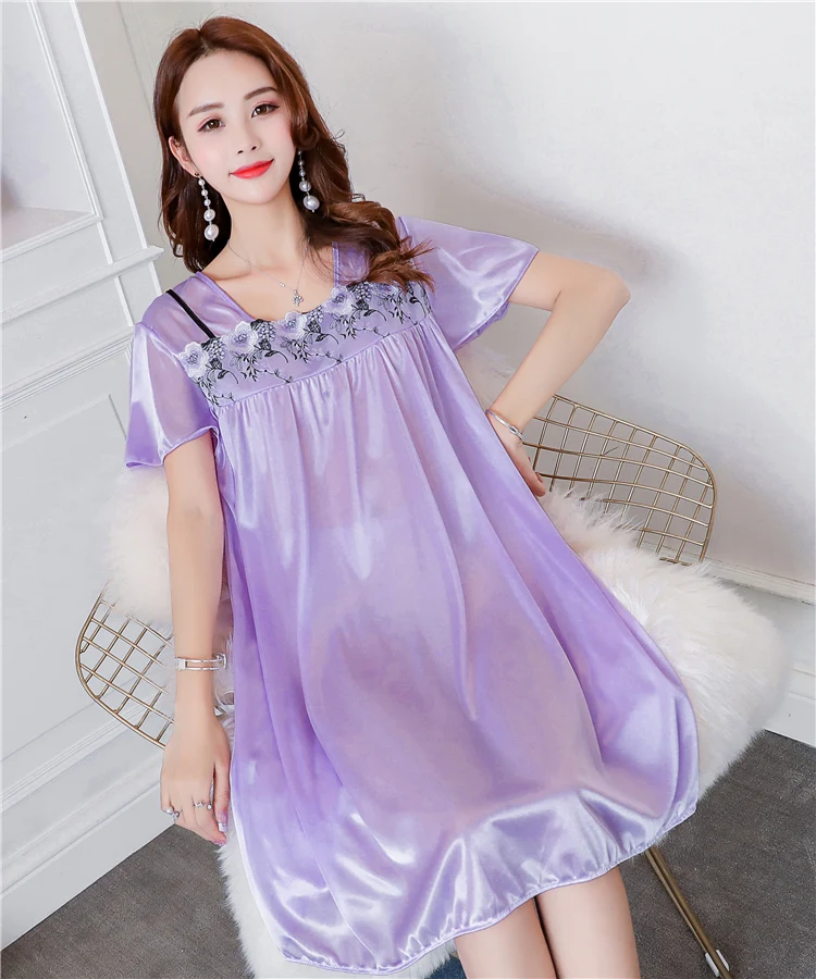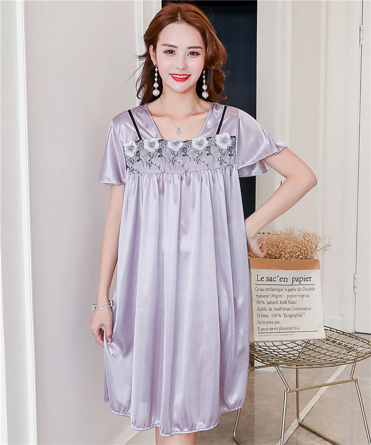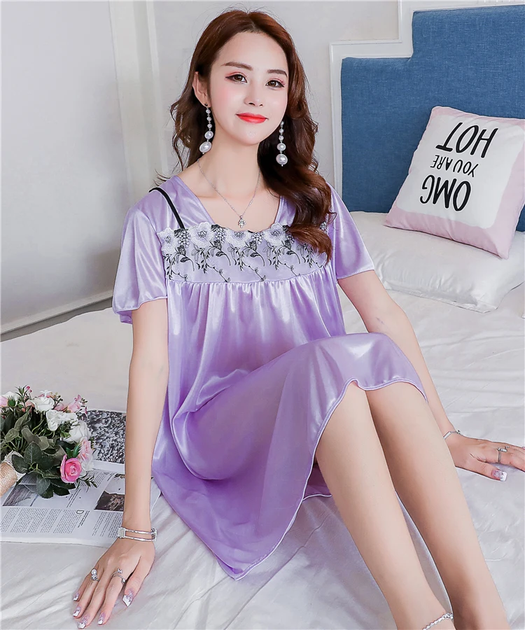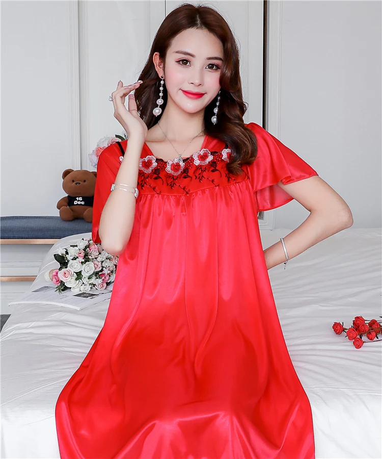 Ночная рубашка Женская атласная, домашняя Удобная Ночная сорочка из вискозы, длинная ночная рубашка, большие размеры 4XL