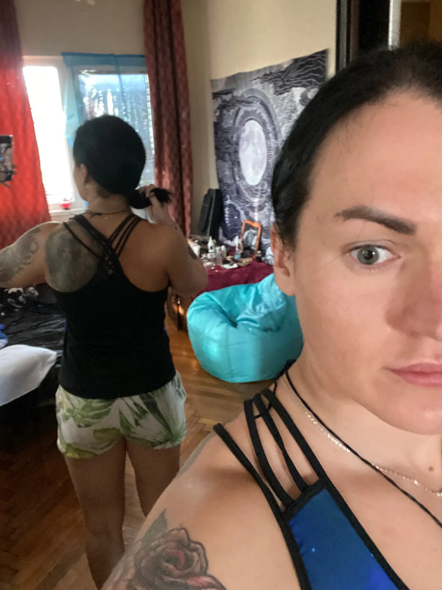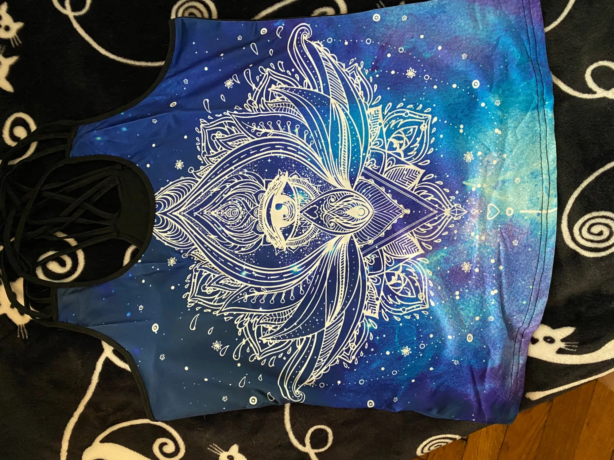 Майка очень маленькая, на XS где-то, коротенькая, но мне подходит, для занятий спортом самое то