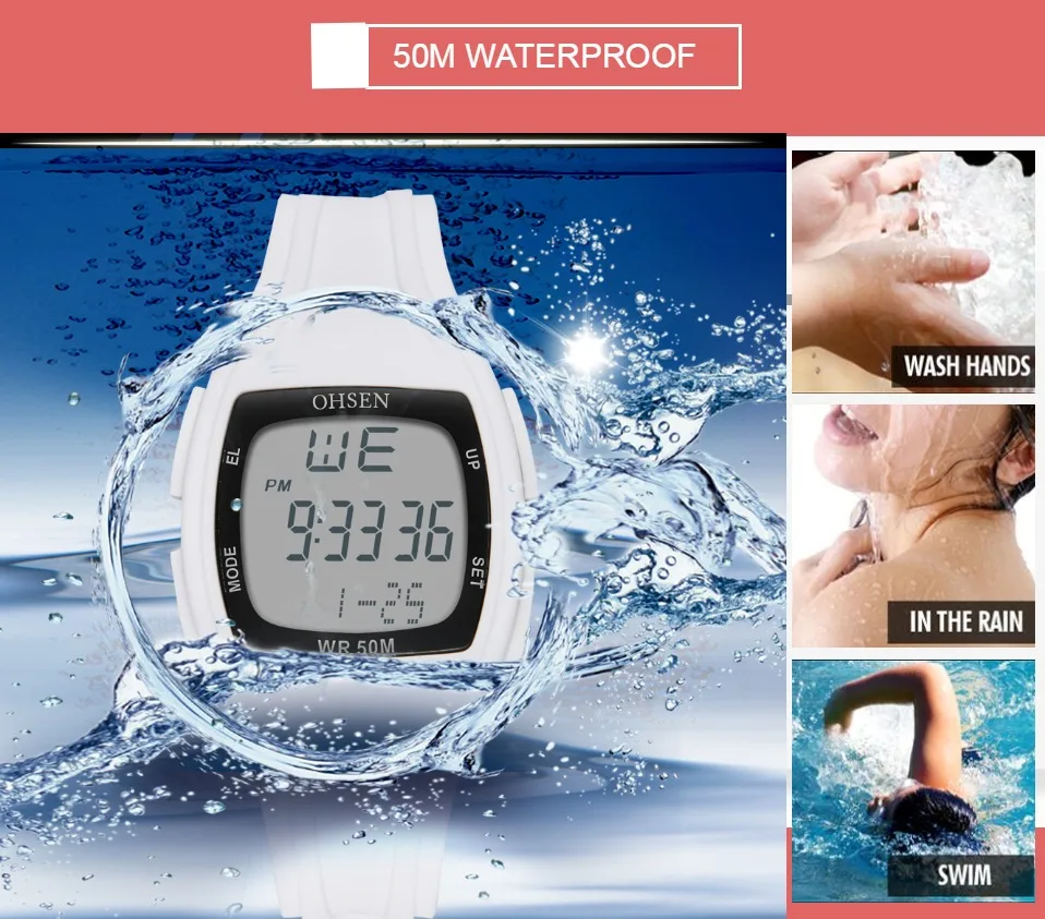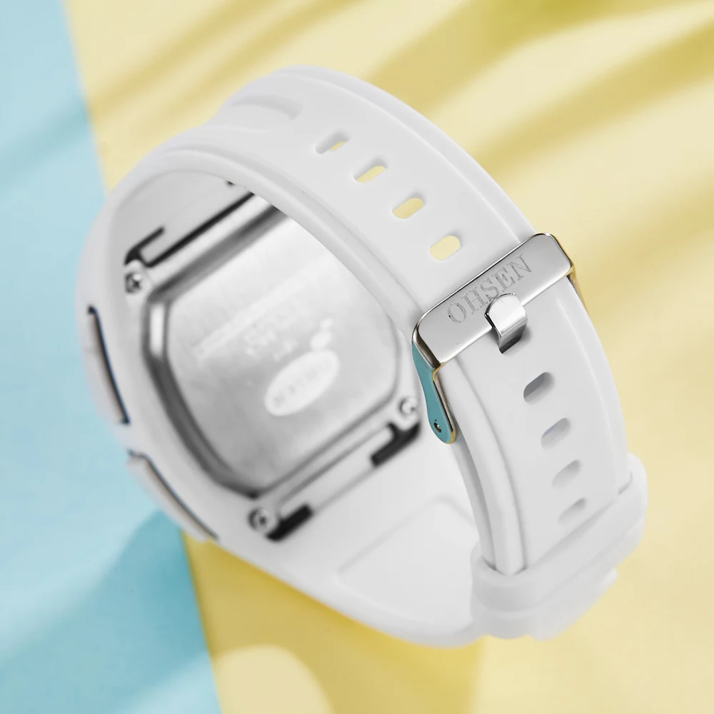 Часы наручные цифровые светодиодные для мужчин и женщин, модные электронные водонепроницаемые, с силиконовым ремешком, белые