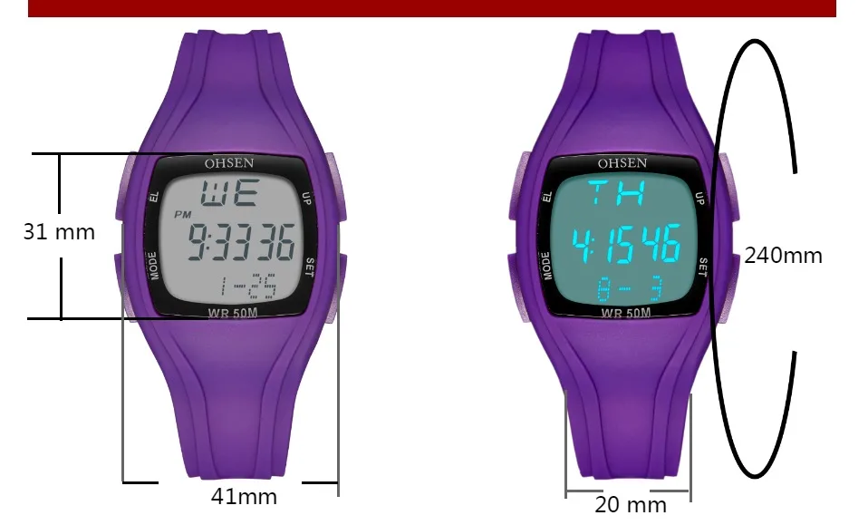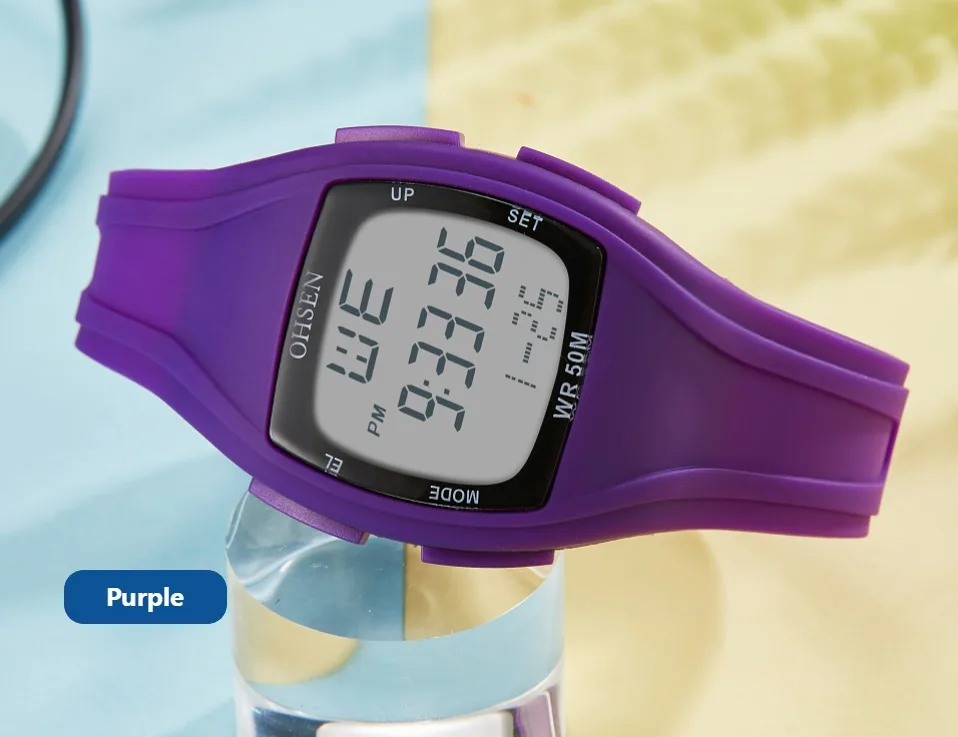 Цифровые светодиодные женские спортивные часы, Модные фиолетовые си...