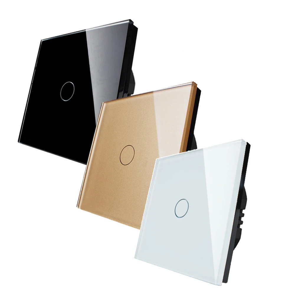Настенный сенсорный выключатель, светодиодный светильник, закаленное стекло, экран, панель, 1 банда, AC 110 В 220 в 240 В, датчик, стандарт ЕС