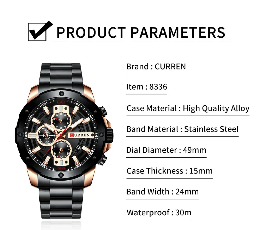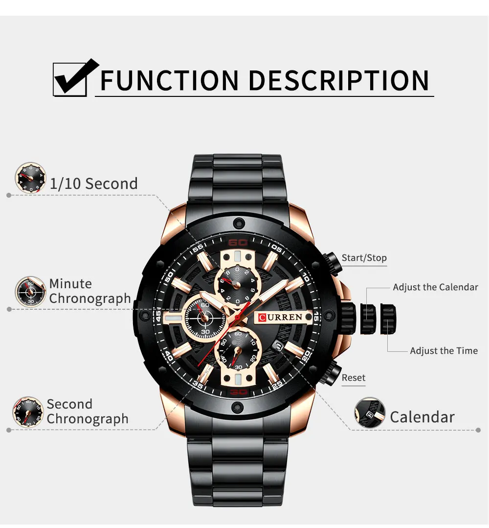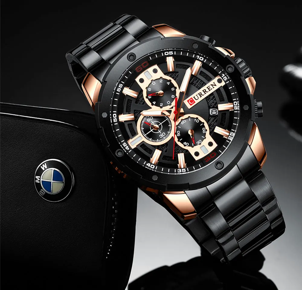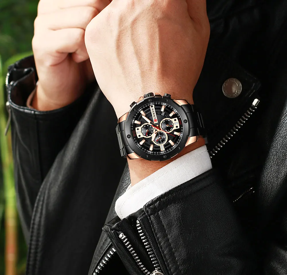Часы наручные Curren Мужские кварцевые, брендовые Роскошные деловые водонепроницаемые с хронографом, черные