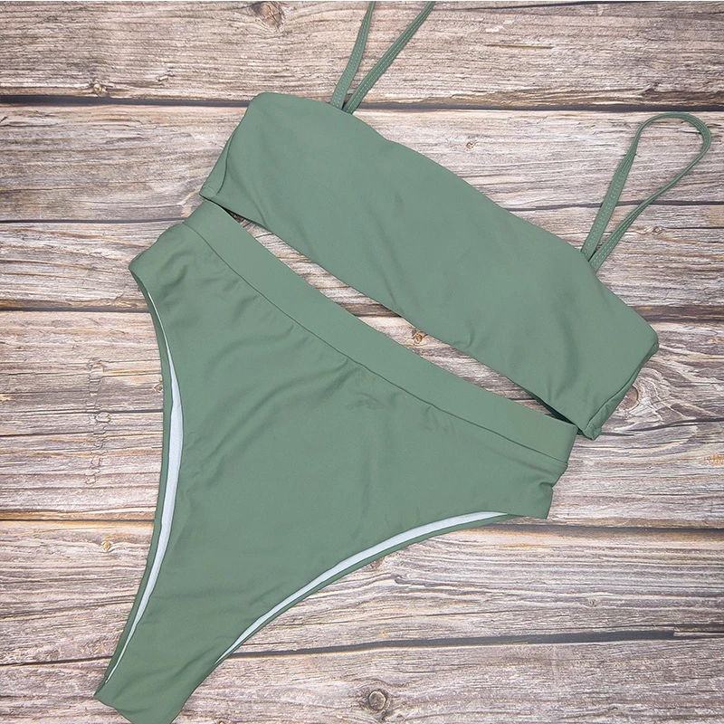 Комплект бикини женский однотонный с высокой талией, пикантный популярный купальник из двух предметов, модная пляжная одежда, 6 цветов