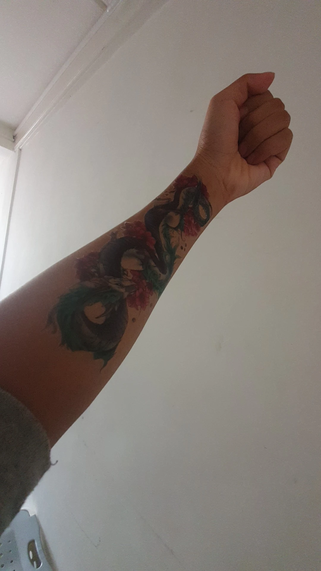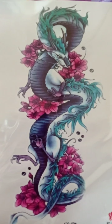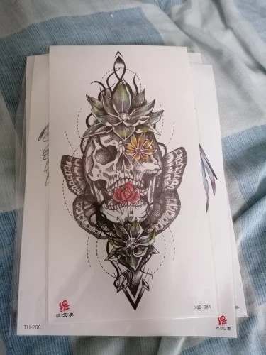 Выглядит ярко и многообещающе. Брала для пробы, чтобы посмотреть ощущения перед походом за настоящей татуировкой. Сама наклейка соответствует описанию. Пришла немного помятой, но нанесению это не мешает. В общем, для баловства самое то.