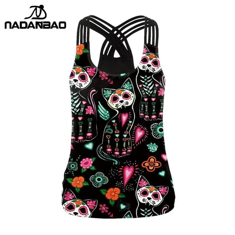 Женские готические майки NADANBAO, летняя футболка с изображением черепа, тонкие эластичные топы для фитнеса, черная яркая повседневная безрукавка, топы