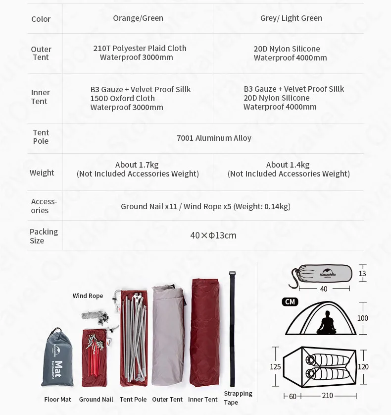 Палатка Naturehike Cloud Up, Ультралегкая палатка для кемпинга на 1, 2, 3 человек, с ковриком, силиконовый, для путешествий