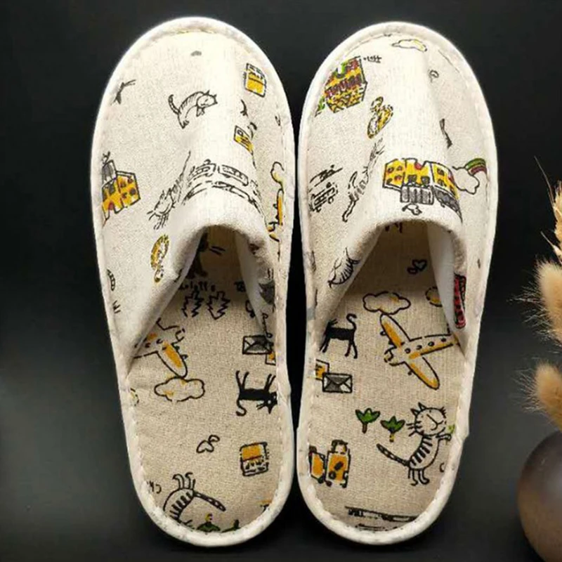 Одноразовые тапочки; Льняные тапочки с принтом; Гостиничные тапочки для салона красоты