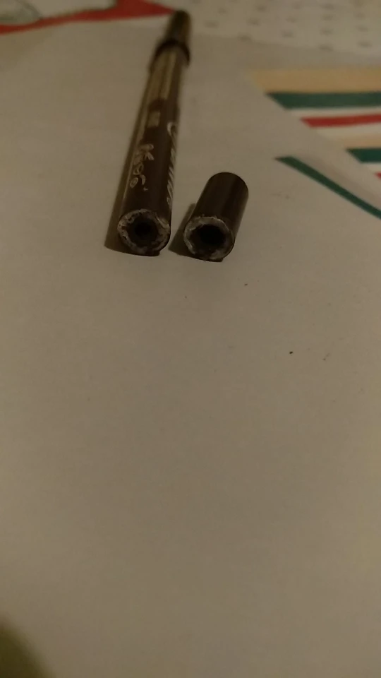 хороший карандаш, колпачок с некоторым усилием снимается и стержень можно выдвинуть ещё, т.е. строгать не надо.