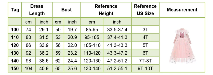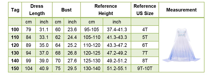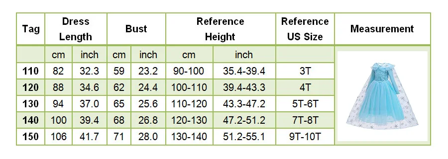 Название платья: платье Эльзы для девочек; Детский карнавальный костюм Снежной Королевы 2; Костюм принцессы; Детский карнавальный костюм; Праздничная одежда для дня рождения Китайский Размер: (100)-110-120-130-140-150 Нам Размеры: 3T, 4T, От 5 до 6 лет, От 7 до 8 лет, От 9 до 10 лет Материал: полиэстер, смесь хлопка Возраст: 3-10 лет Посылка: по вашему выбору + Opp сумка Размер аксессуара: Доступно для большинства детей.