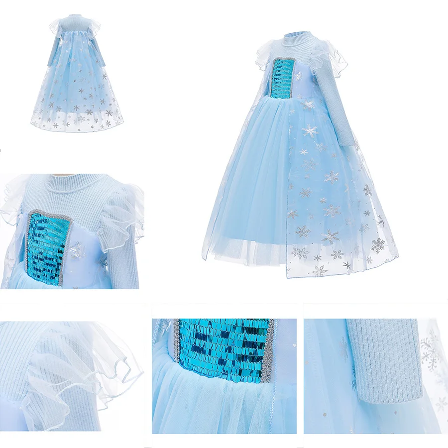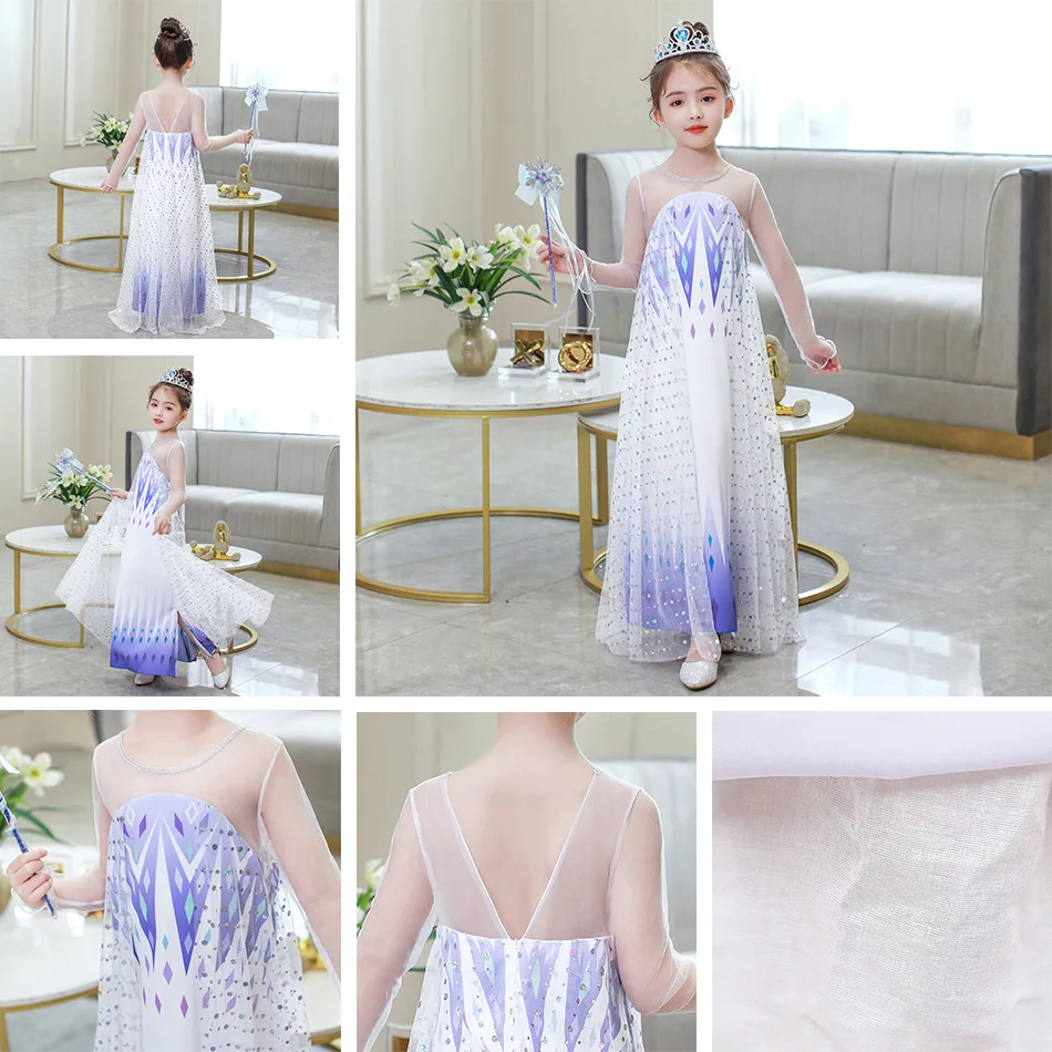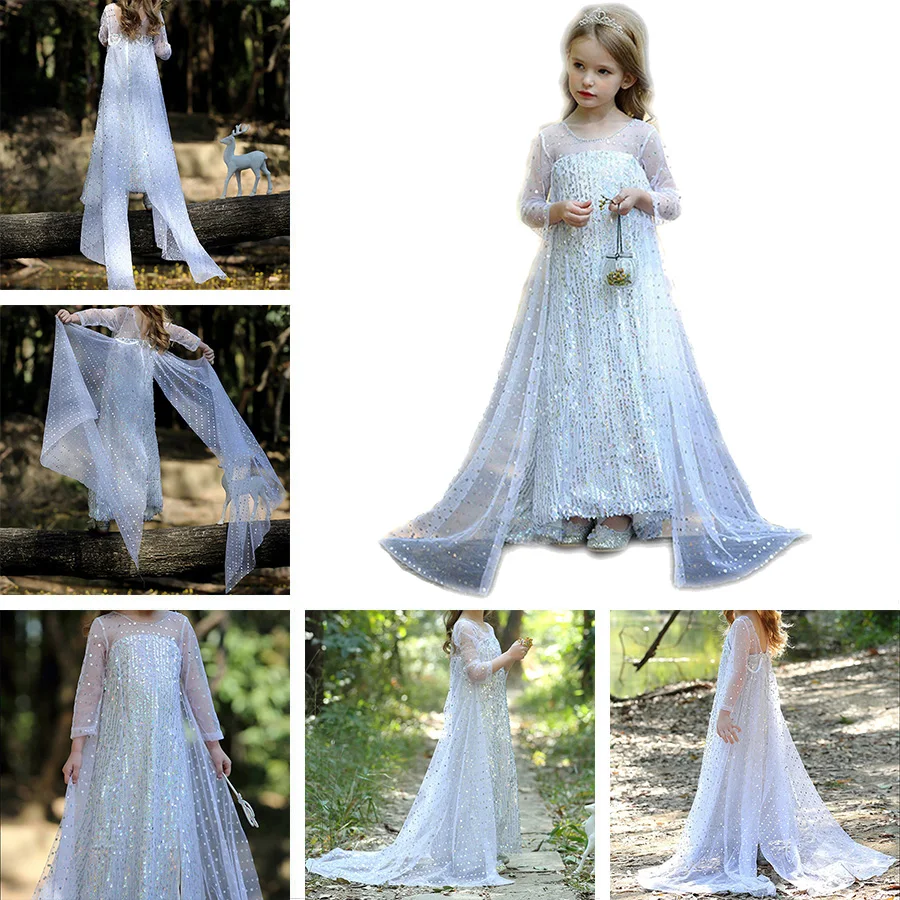 Платье Эльзы для девочек; Детский маскарадный костюм Снежной Королевы; 2 Эльзы; Праздничный костюм принцессы для детей; Одежда для праздника, карнавала, дня рождения